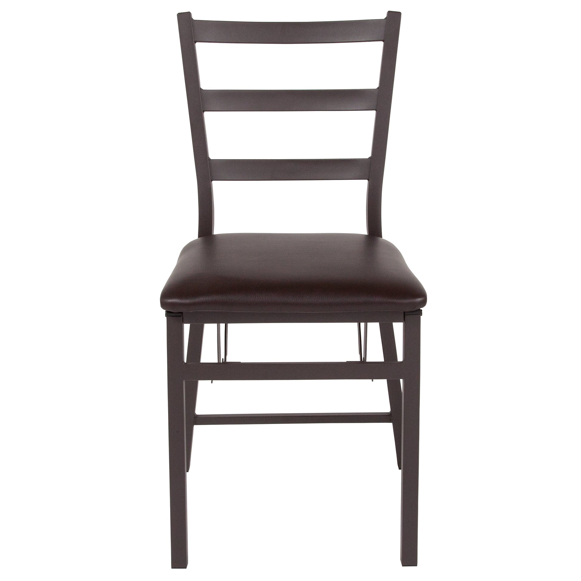 2 Pack HERCULES Series Brown Folding Ladder Back Metal Chair with Brown Vinyl Seat Dimensions: 17"W x 18"D x 33"H