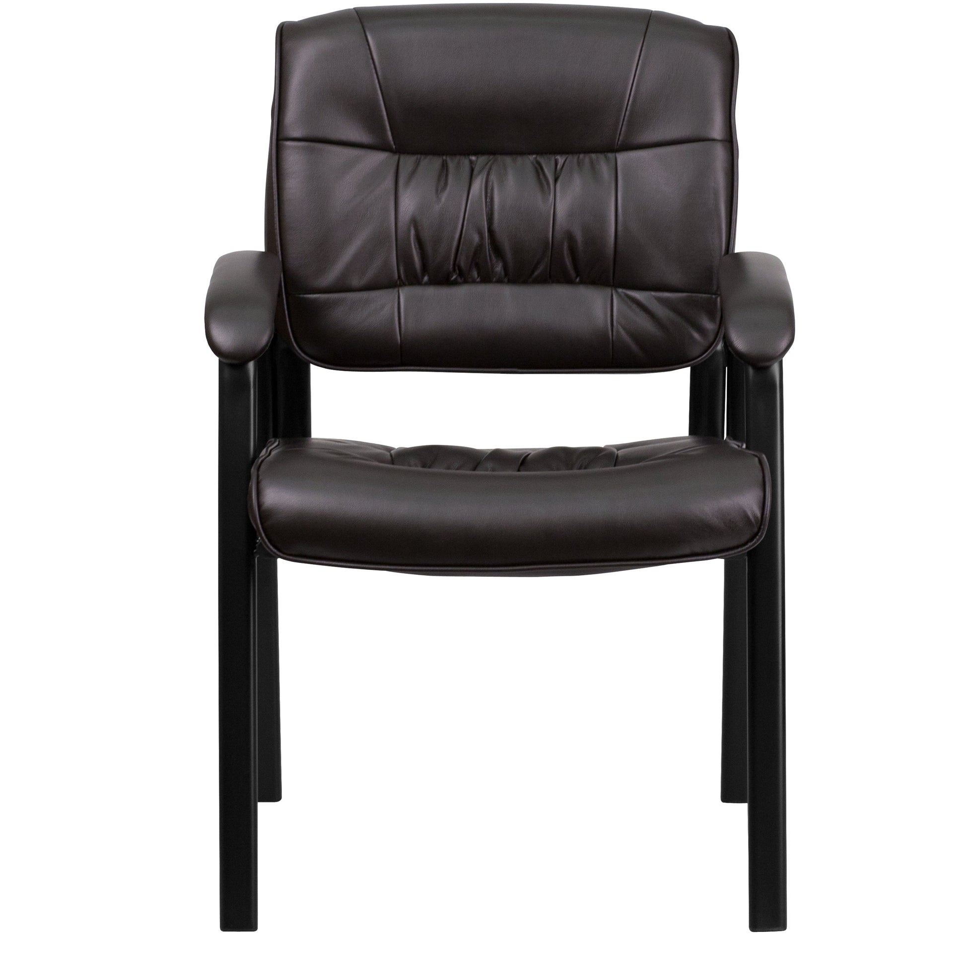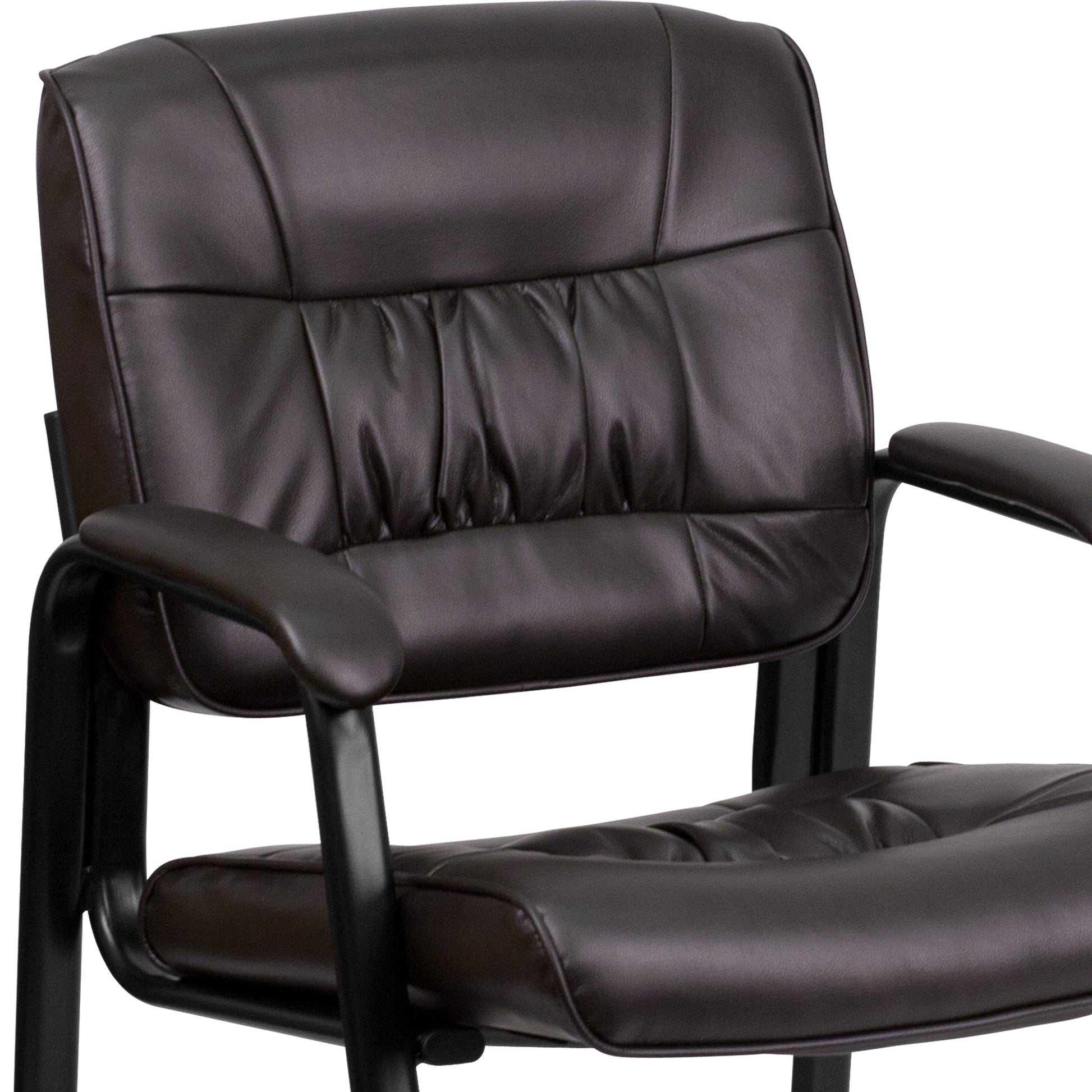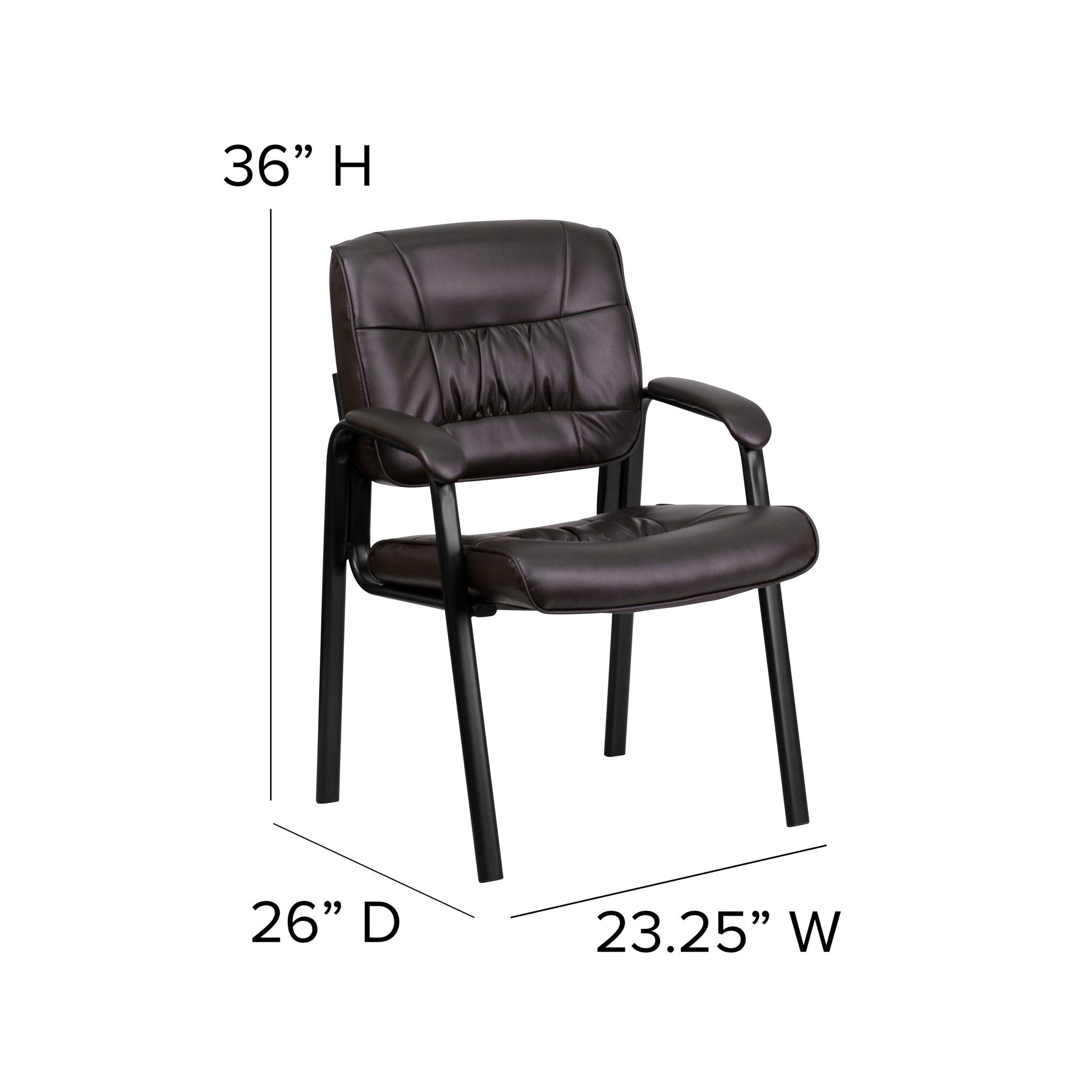 Haeger Brown LeatherSoft Executive Side Reception Chair with Black Metal Frame Dimensions: 23.25"W x 26"D x 36"H