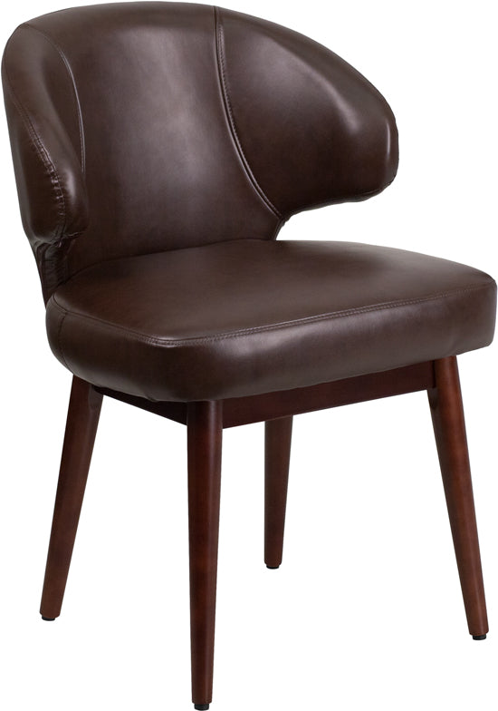 Comfort Back Series Brown LeatherSoft Side Reception Chair with Walnut Legs Dimensions: 23.5"W x 24"D x 33.75"H