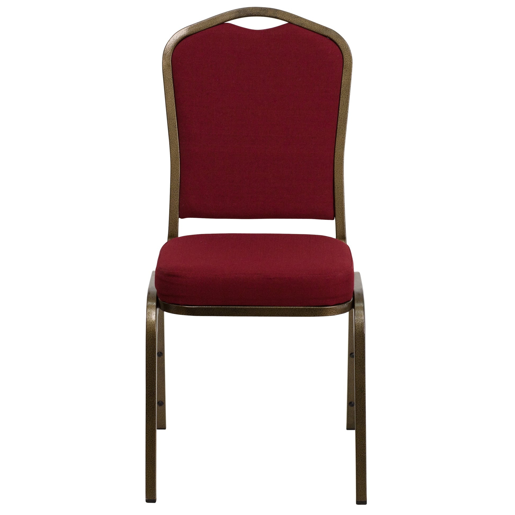 HERCULES Series Crown Back Stacking Banquet Chair in Burgundy Fabric - Gold Vein Frame Dimensions: 17.25"W x 20.25"D x 38"H