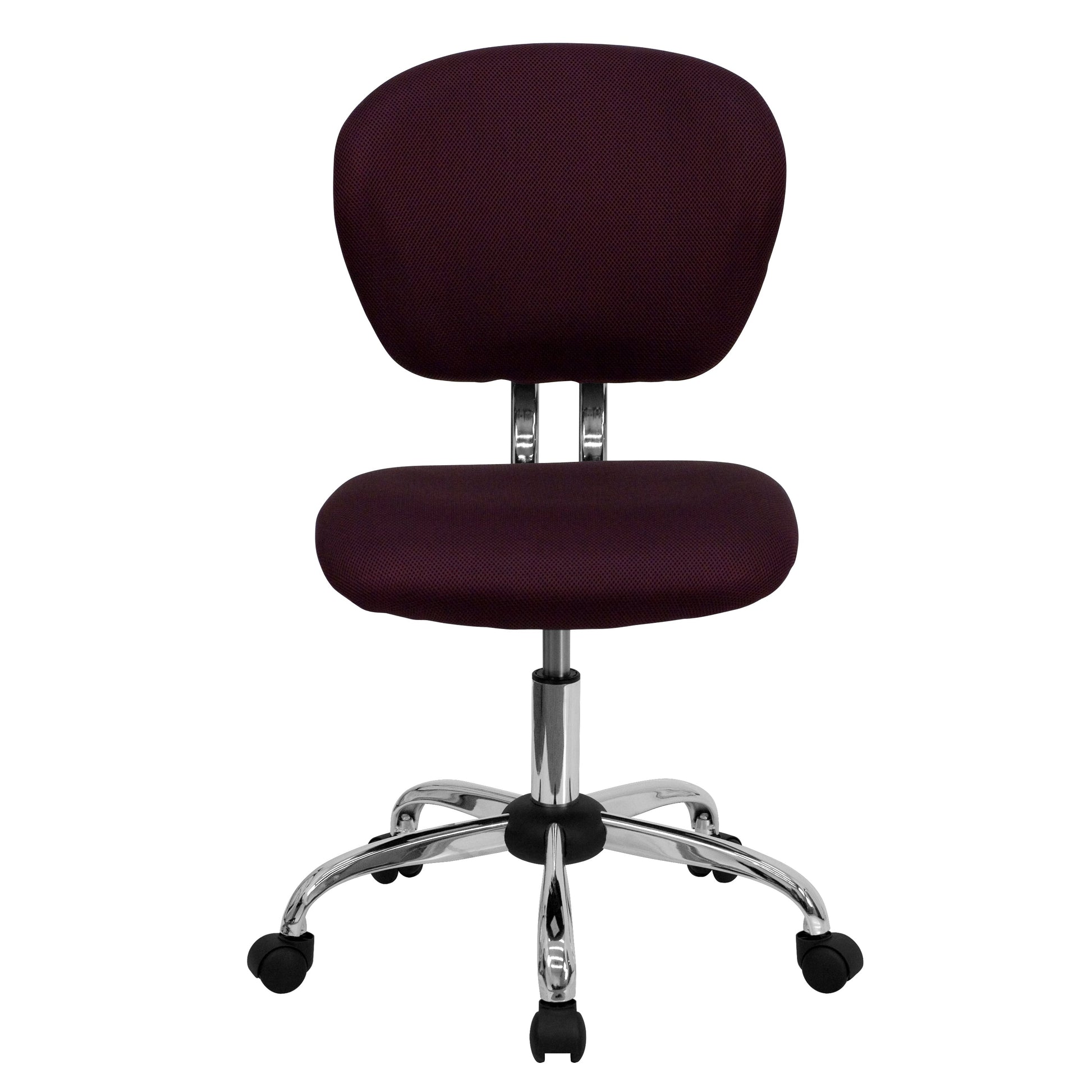 Beverly Mid-Back Burgundy Mesh Padded Swivel Task Office Chair with Chrome Base Dimensions: 23.5"W x 25.5"D x 33.5" - 37.5"H