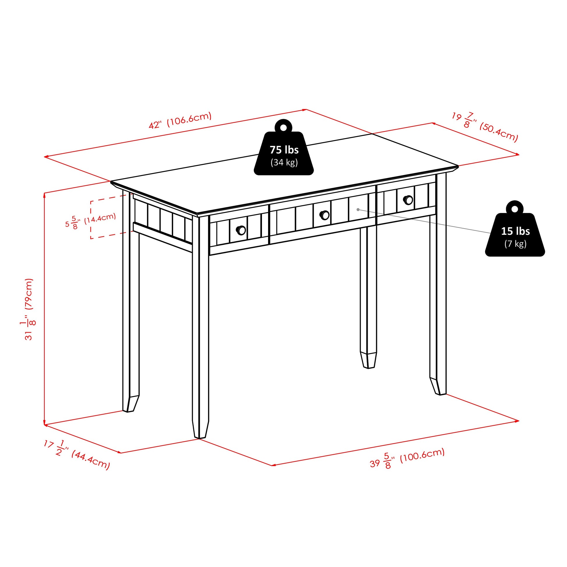 The warm, cottage styling of the Winsome Wood Burke Home Office Writing Desk will transform your home office into an inviting place to work. The side and front wainscoting panels, beveled cabinet top, tapered legs, and brushed nickel knobs all give this versatile piece a handsome, yet casual feel. The desk offers a generous desktop surface perfect for school projects, homework or working on your laptop. Featuring three drawers to keep office and writing accessories organized. Ample clearance underneath table apron to ground, 24.65”H, allowing for any standard chair to be used while at the desk. Constructed of sturdy solid and composite wood in a dark coffee finish. Create a relaxed, stylish setting by completing your office space with the additional items from the Winsome Burke collection (each sold separately). Conveniently ships in one box and ready to be assembled. Replacement part request can be submitted directly to the manufacturer within 60 days from date of purchase.