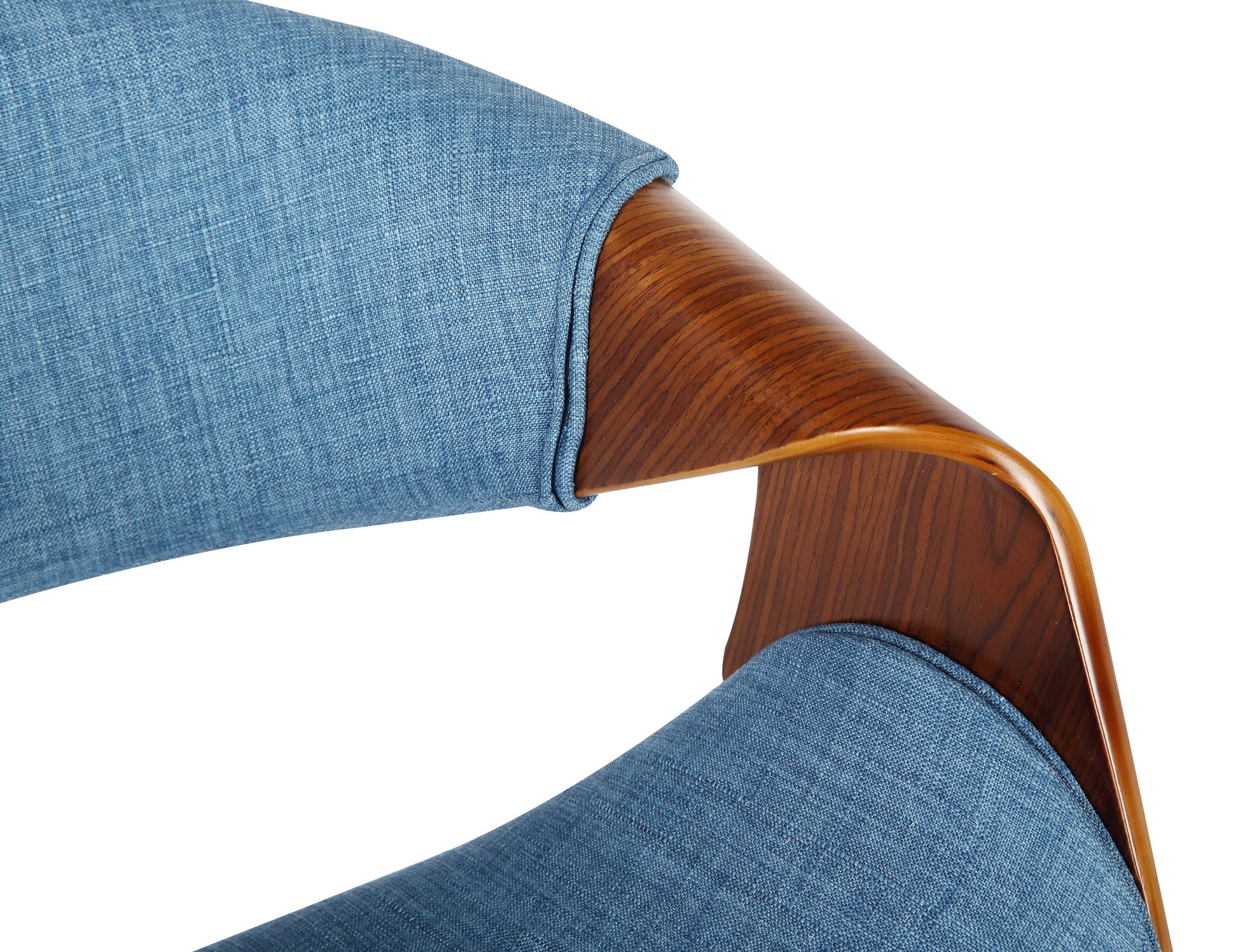 The Armen Living Butterfly modern side chair is a wonderful addition to the contemporary kitchen or living room setting. This mid-century style dining chair features a comfortable curved back upholstered in beautiful fabric. The arms of the Butterfly are curved extensions of the back, making this chair a truly unique and stylish piece. To ensure both sturdiness and natural beauty, the Butterfly is fitted with walnut finished metal legs. This piece is unique and catching that you can play up or down in any room in your home. It is the perfect size for small spaces such as dorm rooms or apartment or it can be used to entertain large gathering in style. The medium high cushion open back is ideal for posture alignment and an unmatched support for days on end. We mimic our butterfly collection by drawing inspiring on how butterflies move across the open field, fluidly and delicately just like the design and look of this collection. This is item is reminiscent of how alluring and delicately a butterfly moves. The foundation of the product is supported by solid walnut wood for a sturdy and stylish aesthetic without comprising practicality and functionality of this item. This item is a versatile piece that can be ideal for dining, kitchen or even home office desk chairs. This product ships in one box with easy and quick set up. We stand by the quality, the craftsmanship and the integrity of our product by offer 1-year warranty for all our products. The style and sophistication of this contemporary piece is sure to impress and comfort. The Butterfly is available in blue, charcoal and green. Product Dimensions: 21"W x 22"D x 29"H SH: 18"