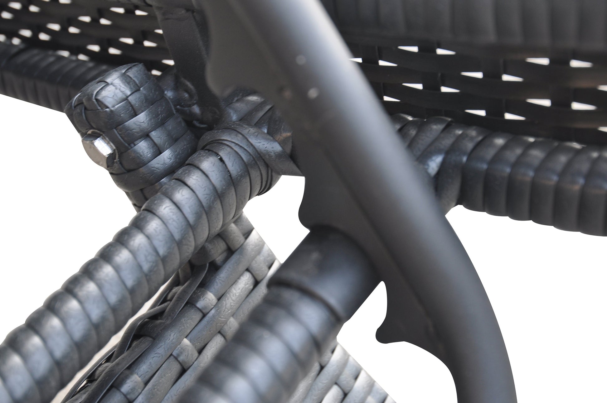 The Armen Living Cabana outdoor patio wicker lounge chair presents a unique spin on the contemporary lounge design. Perfect for any modern outdoor seating arrangement, the Cabana's curved HDPE wicker frame design makes it both comfortable and eye-catching. The Cabana's black wicker back is adjustable, providing you with the flexibility of a traditional lounge chair without compromising on the Cabana's original aesthetic. The Cabana's support and legs are made of durable black powder coat finished aluminum metal that is certain to remain durable for many years to come.