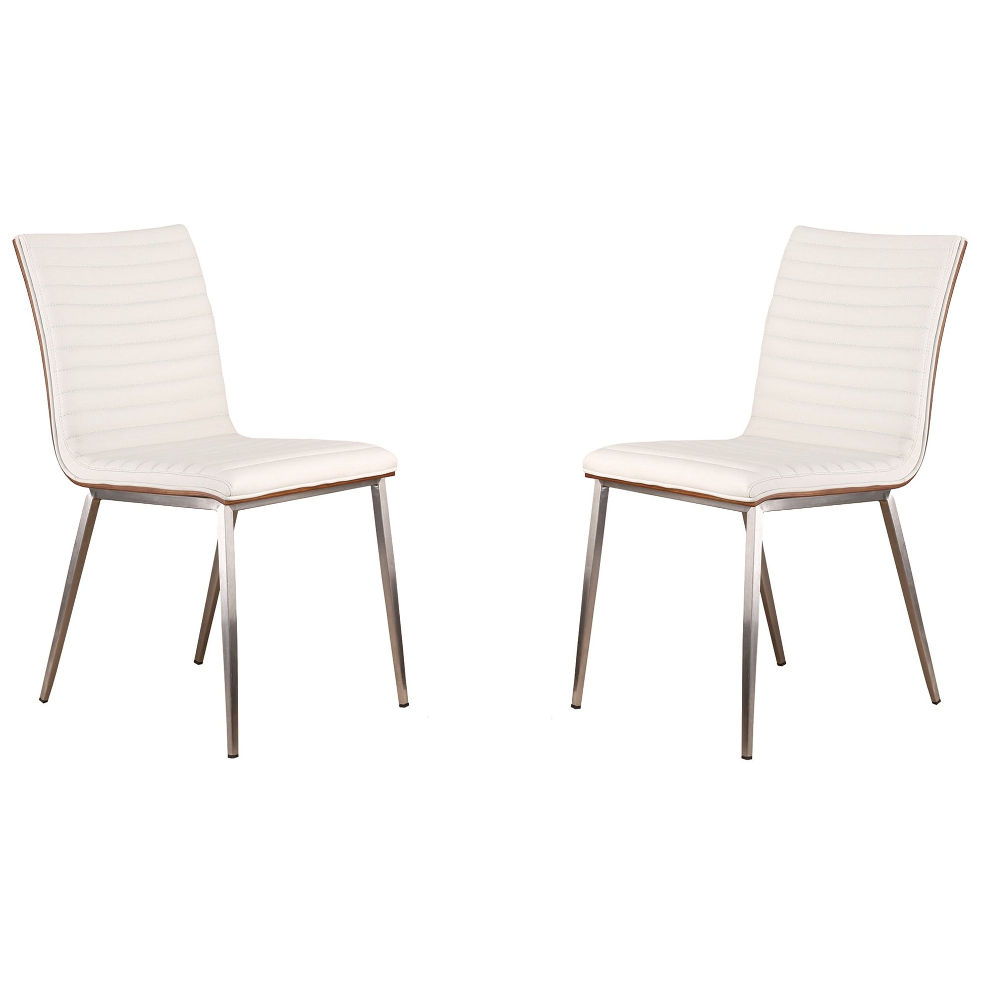 Café Brushed Stainless Steel Dining Chair in White Faux Leather with Walnut Back - Set of 2