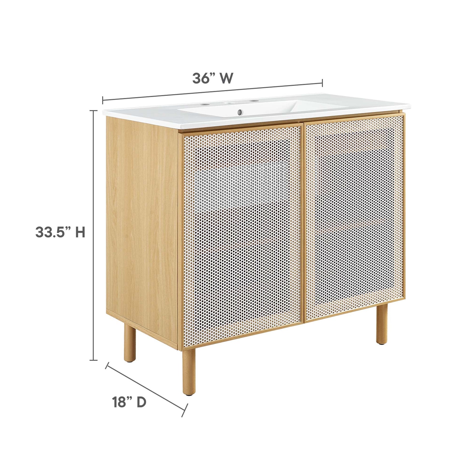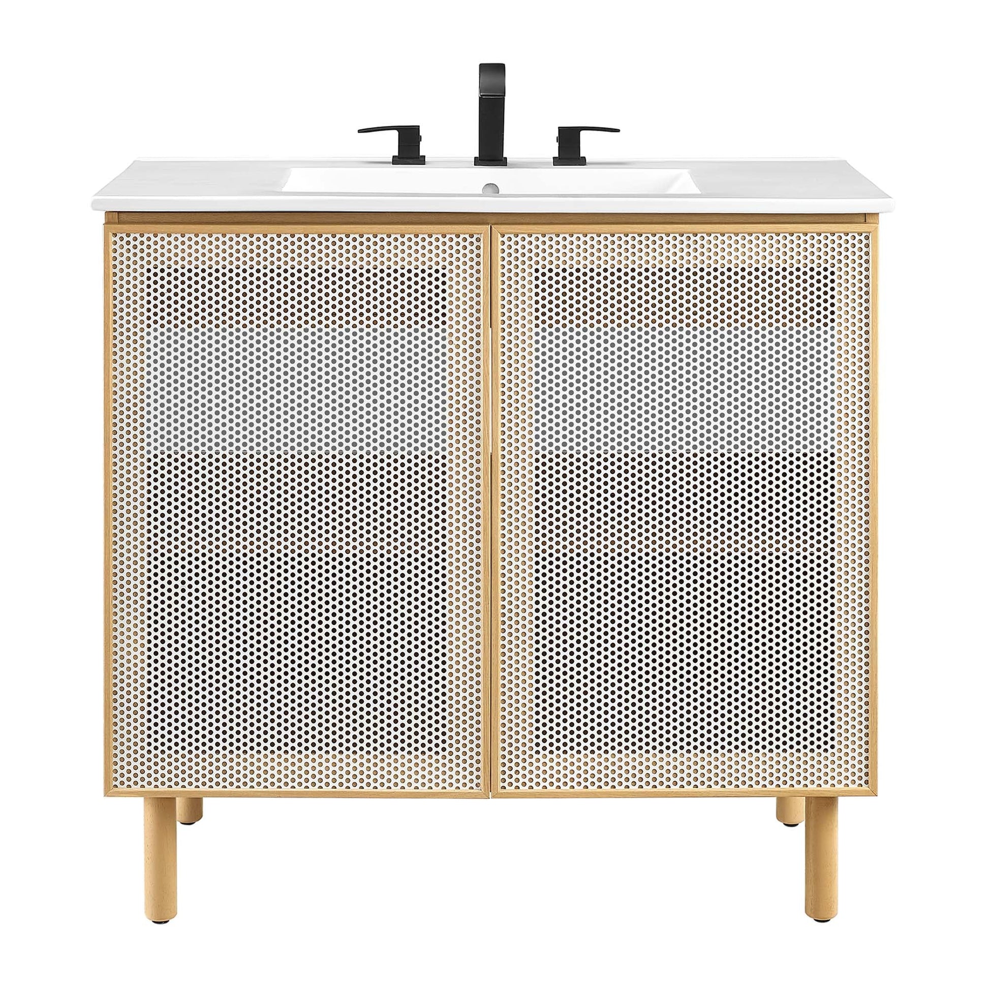 Calla 36" Perforated Metal Bathroom Vanity by Modway EEI-6678-WHI-OAK