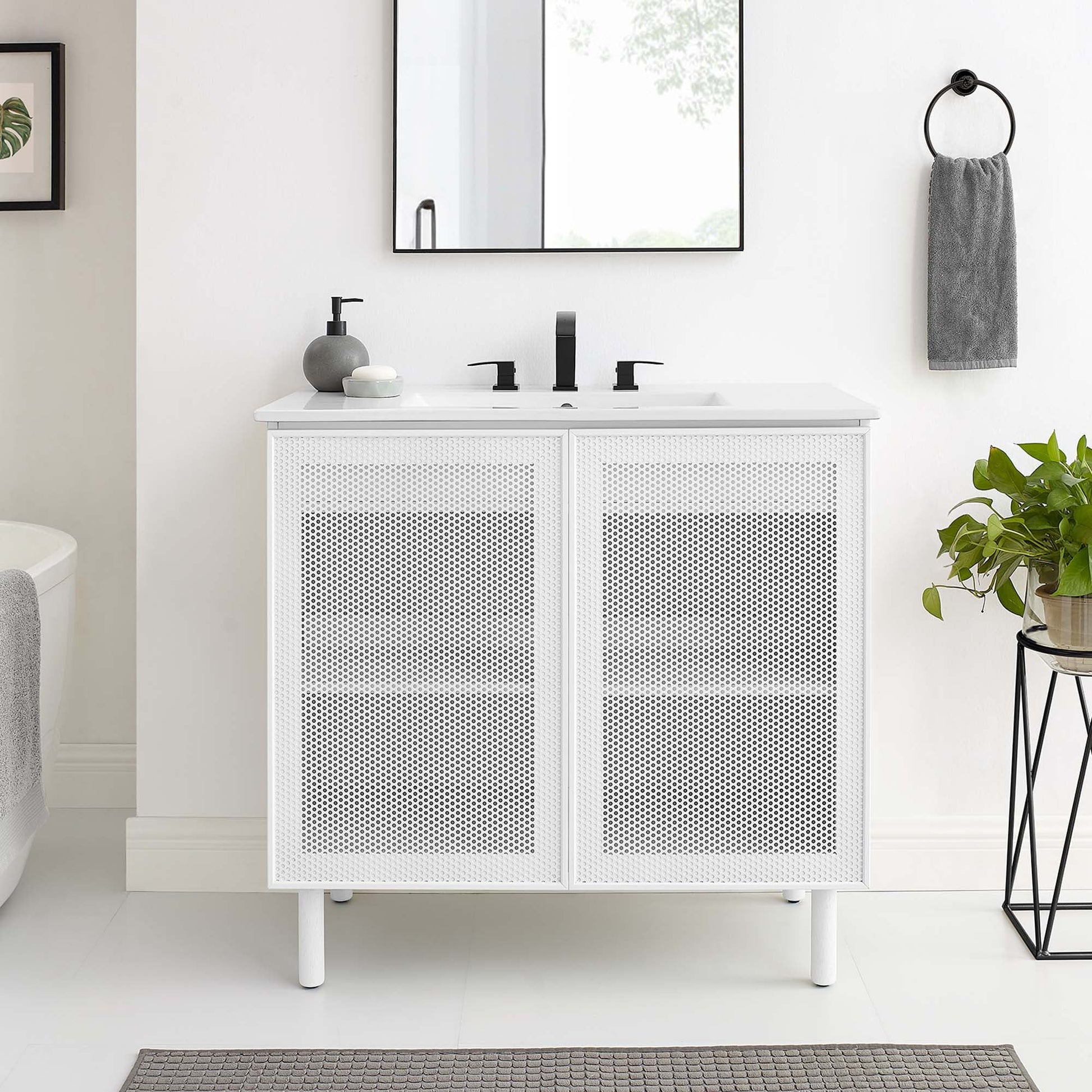 Calla 36" Perforated Metal Bathroom Vanity by Modway EEI-6678-WHI-WHI