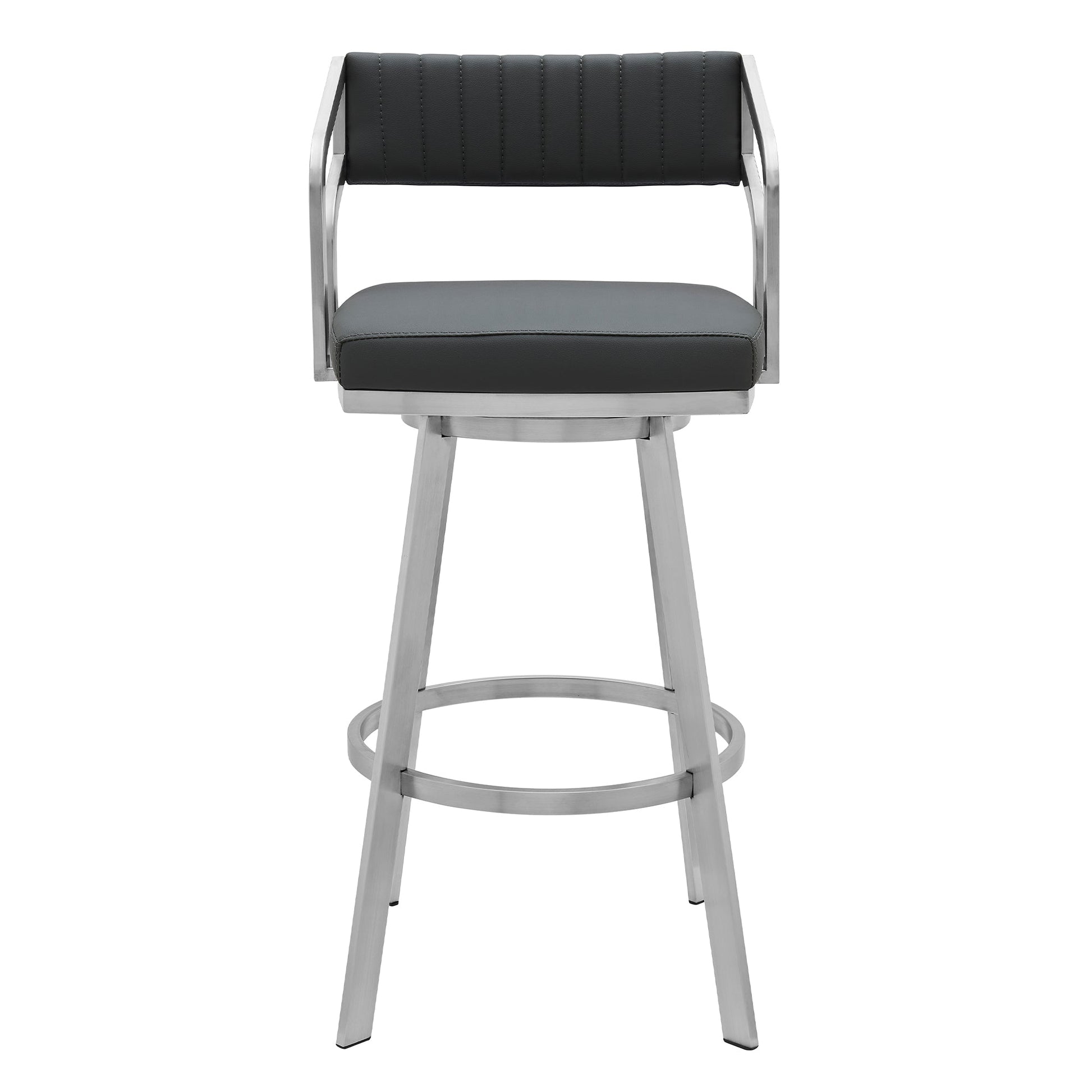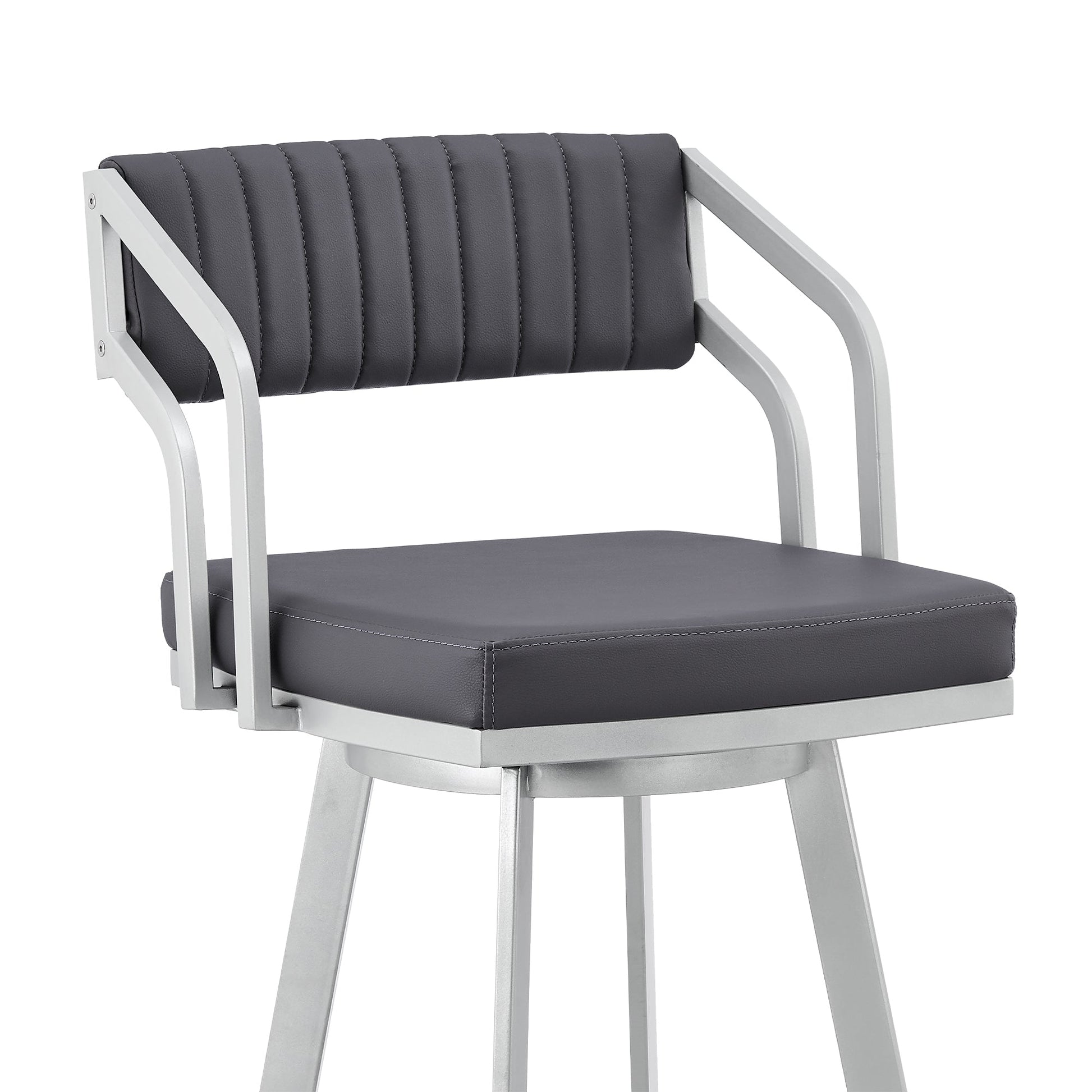 Add a modern touch to your home with this stylish swivel bar and counter height stool. Designed to spark conversations at gatherings, this stool features a unique low arm design that allows you to sit comfortably close to your kitchen island, counter, peninsula, bar, or pub table. Its modern silhouette is enhanced by channel style stitching on the back, while the open-lower back design promotes cool, breathable seating.
