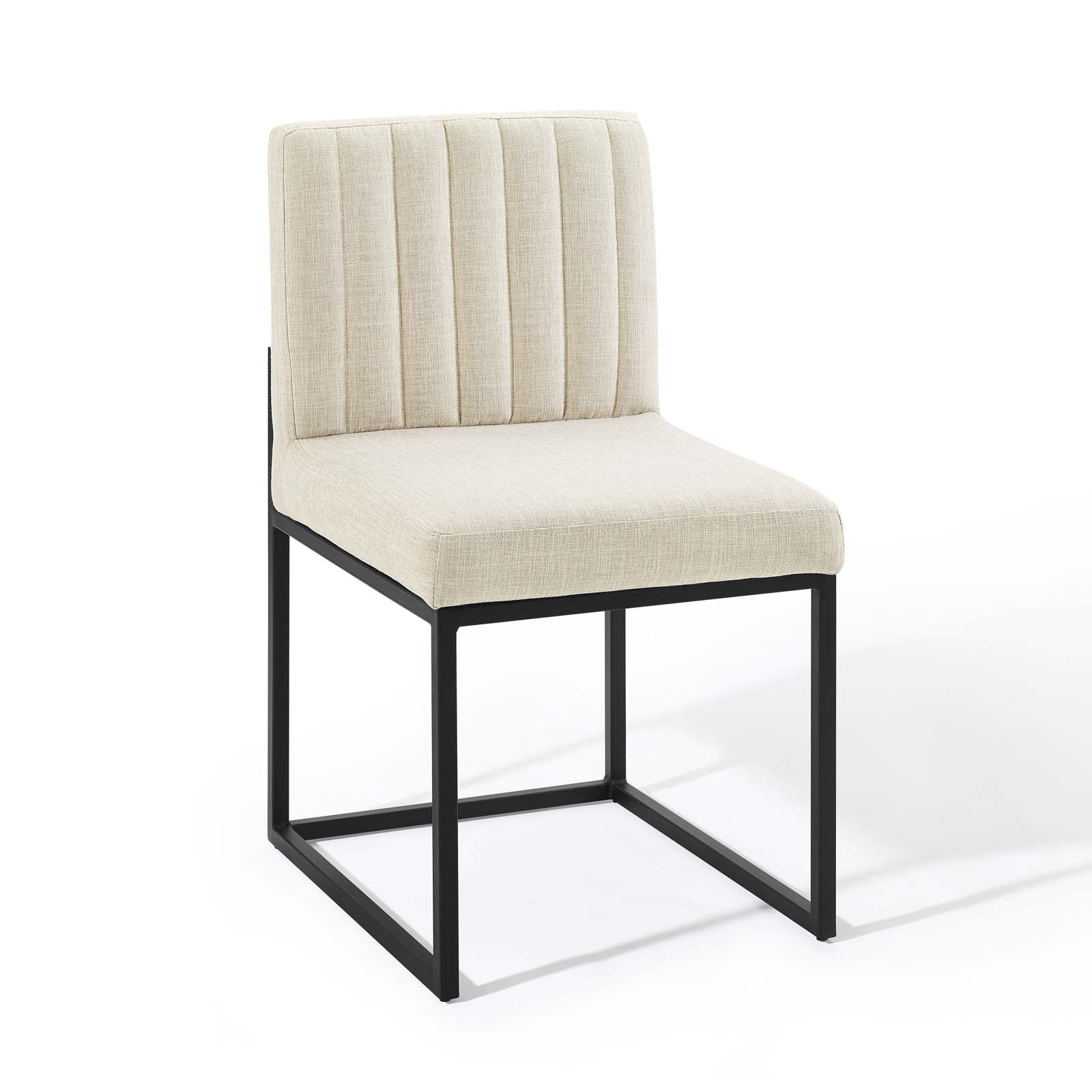 Carriage Channel Tufted Sled Base Upholstered Fabric Dining Chair Black Beige EEI-3807-BLK-BEI