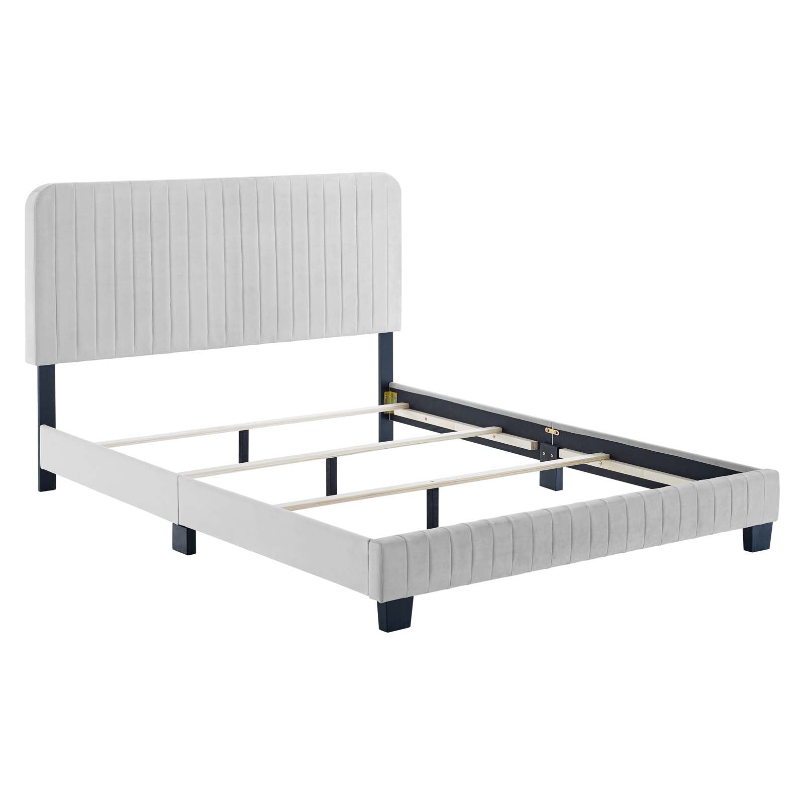 Celine Channel Tufted Performance Velvet King Bed Light Gray MOD-6329-LGR