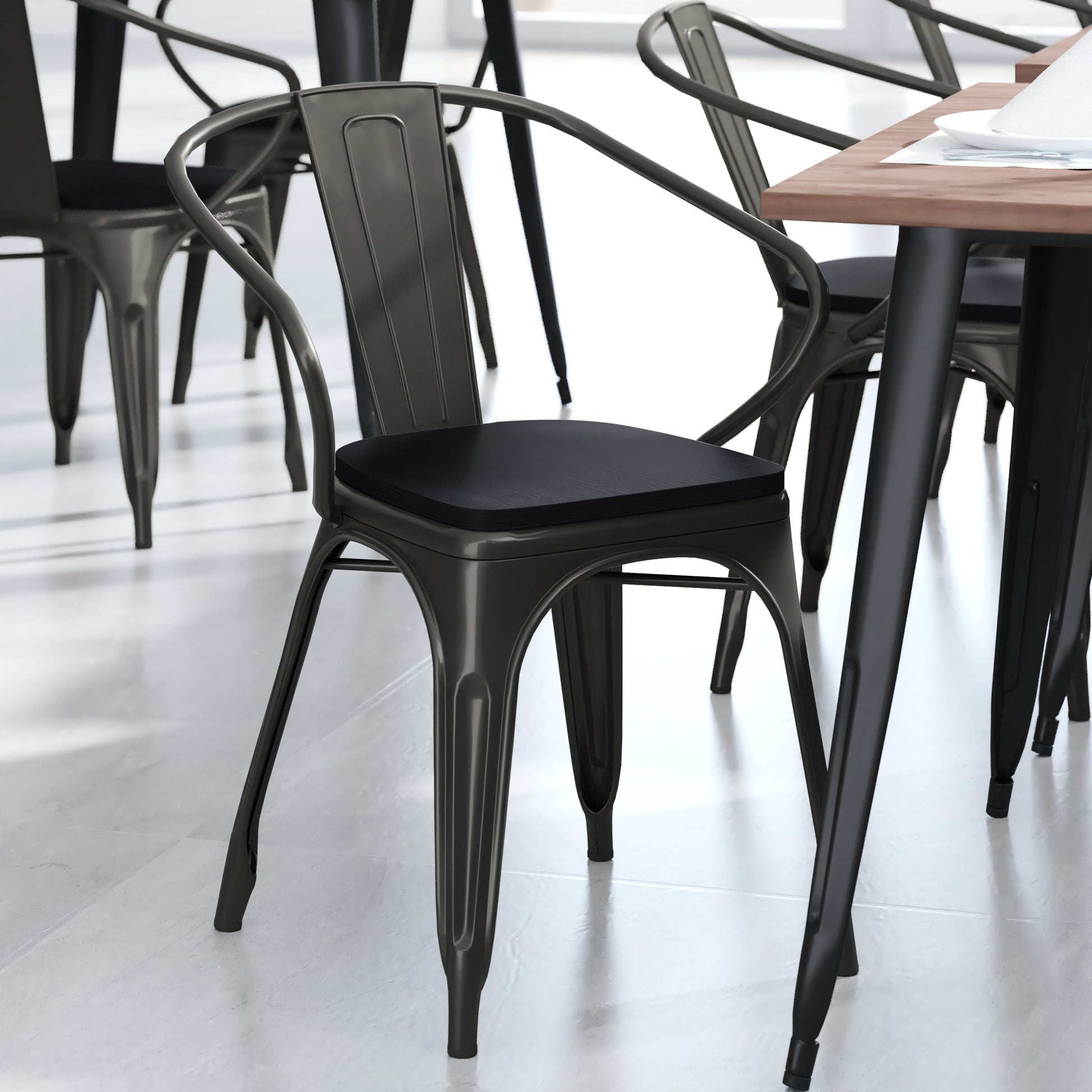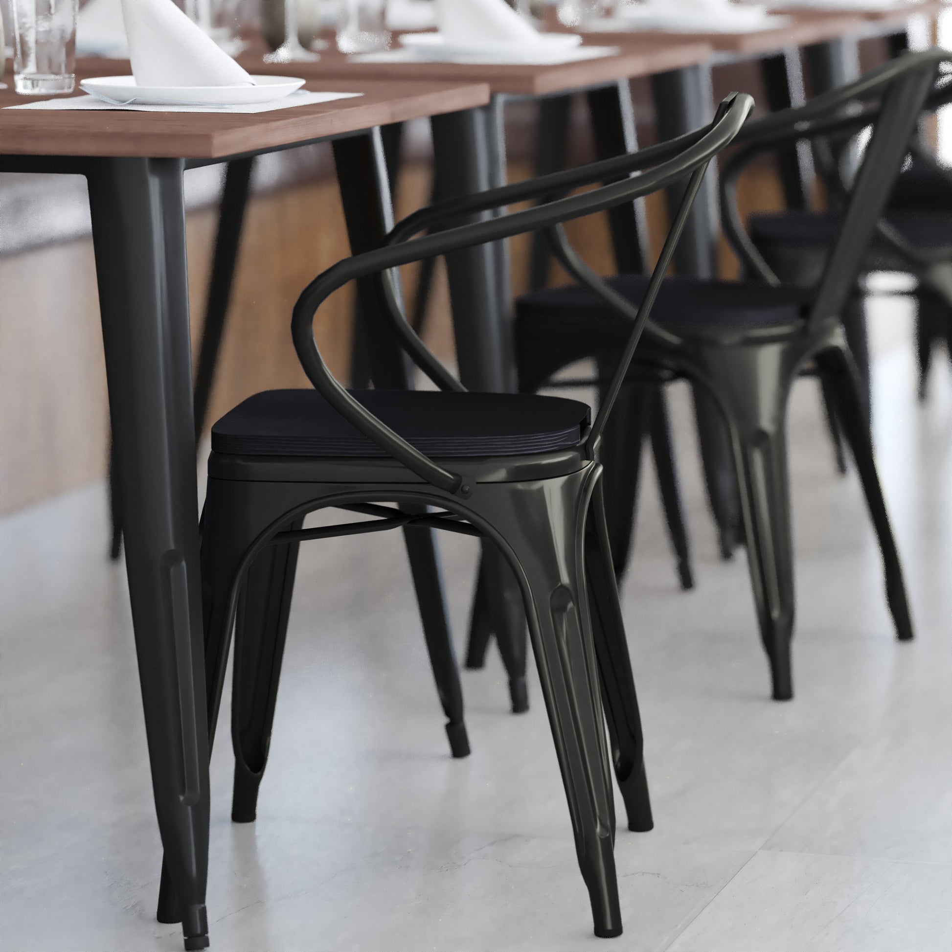 Modern Colorful Stack Chair with Arms and Poly Resin Seat for Commercial or Residential Use