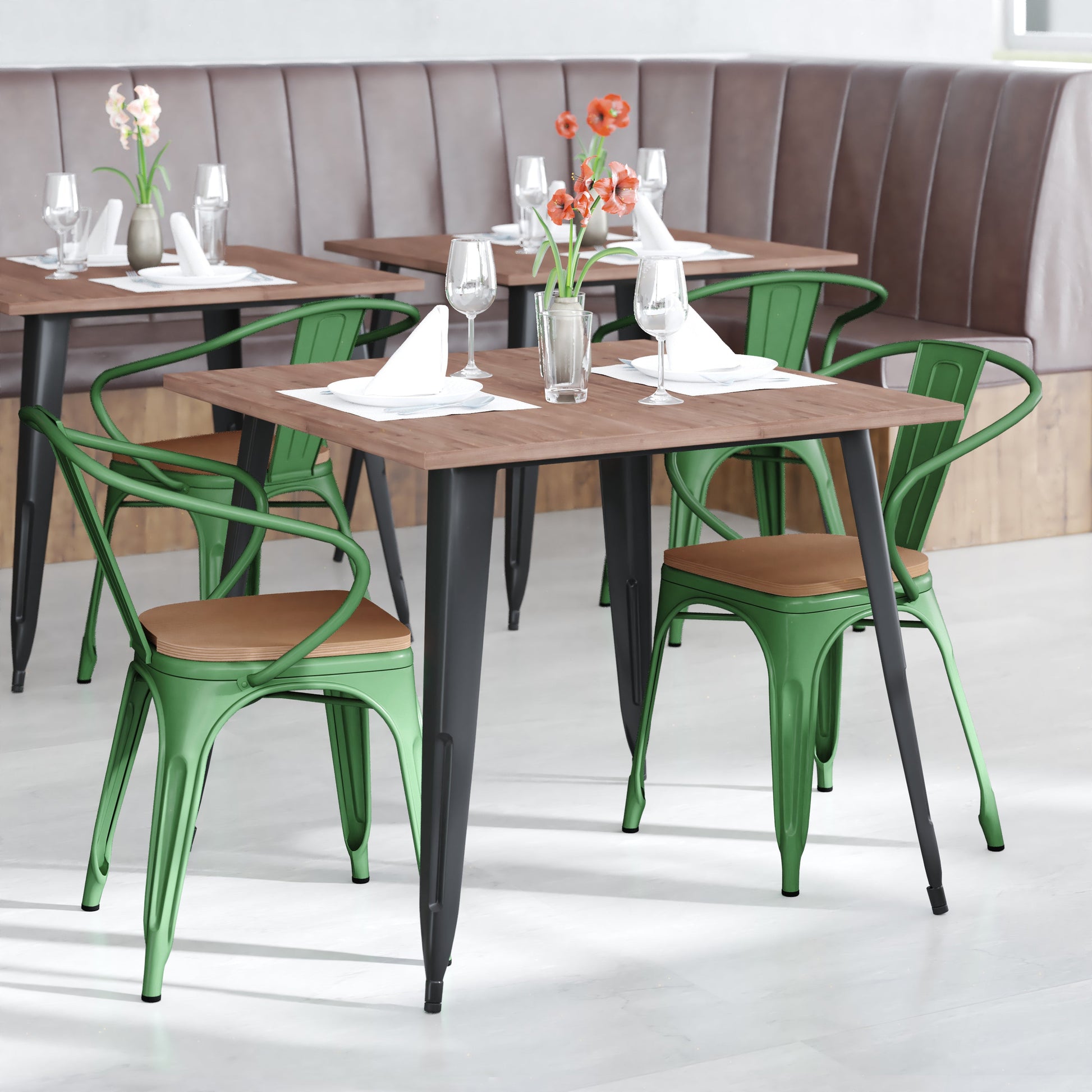 Lend some old world charm to your modern commercial or residential spaces with this colorful dining chair with poly resin seat.