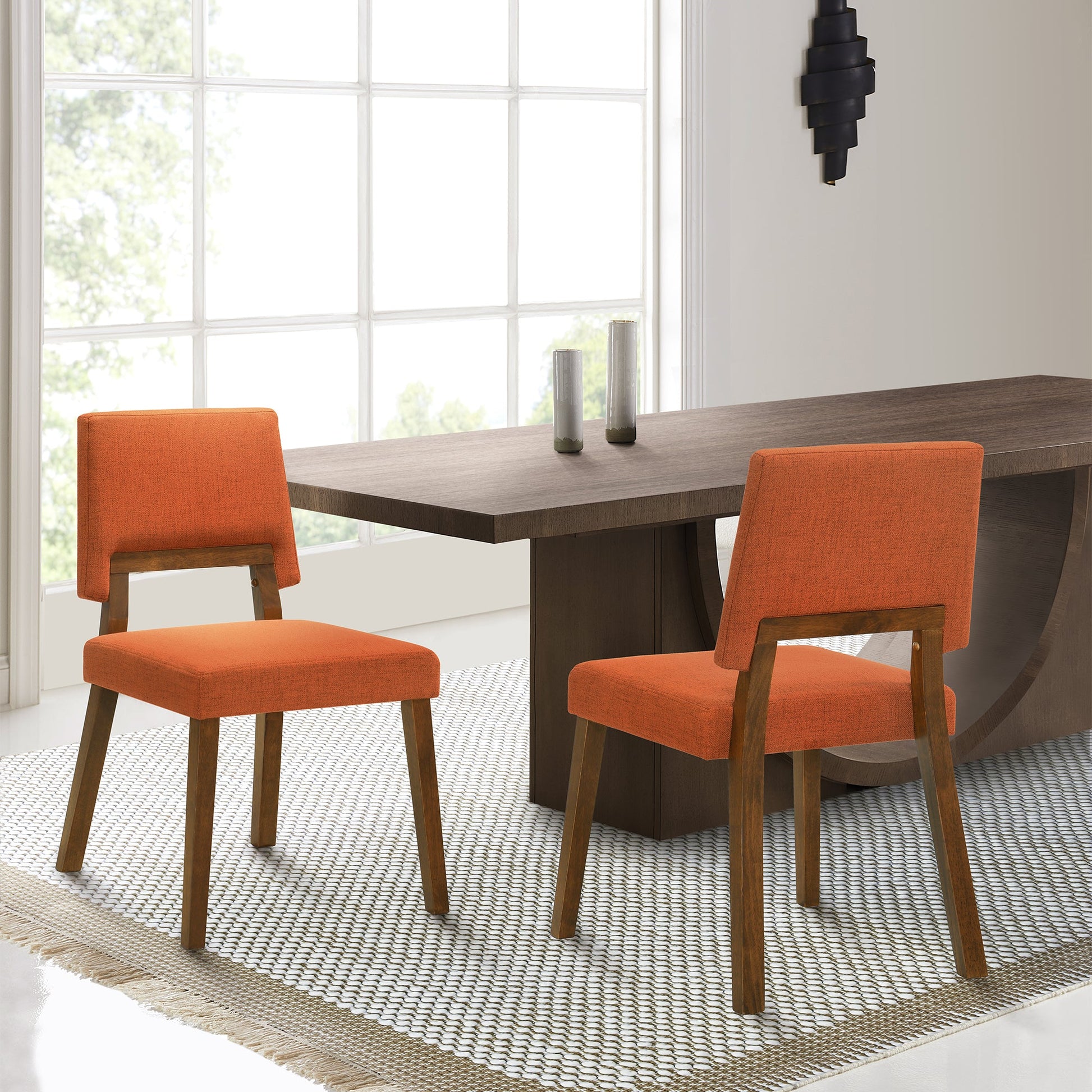 Channell Wood Dining Chair in Walnut Finish with Orange Fabric - Set of 2