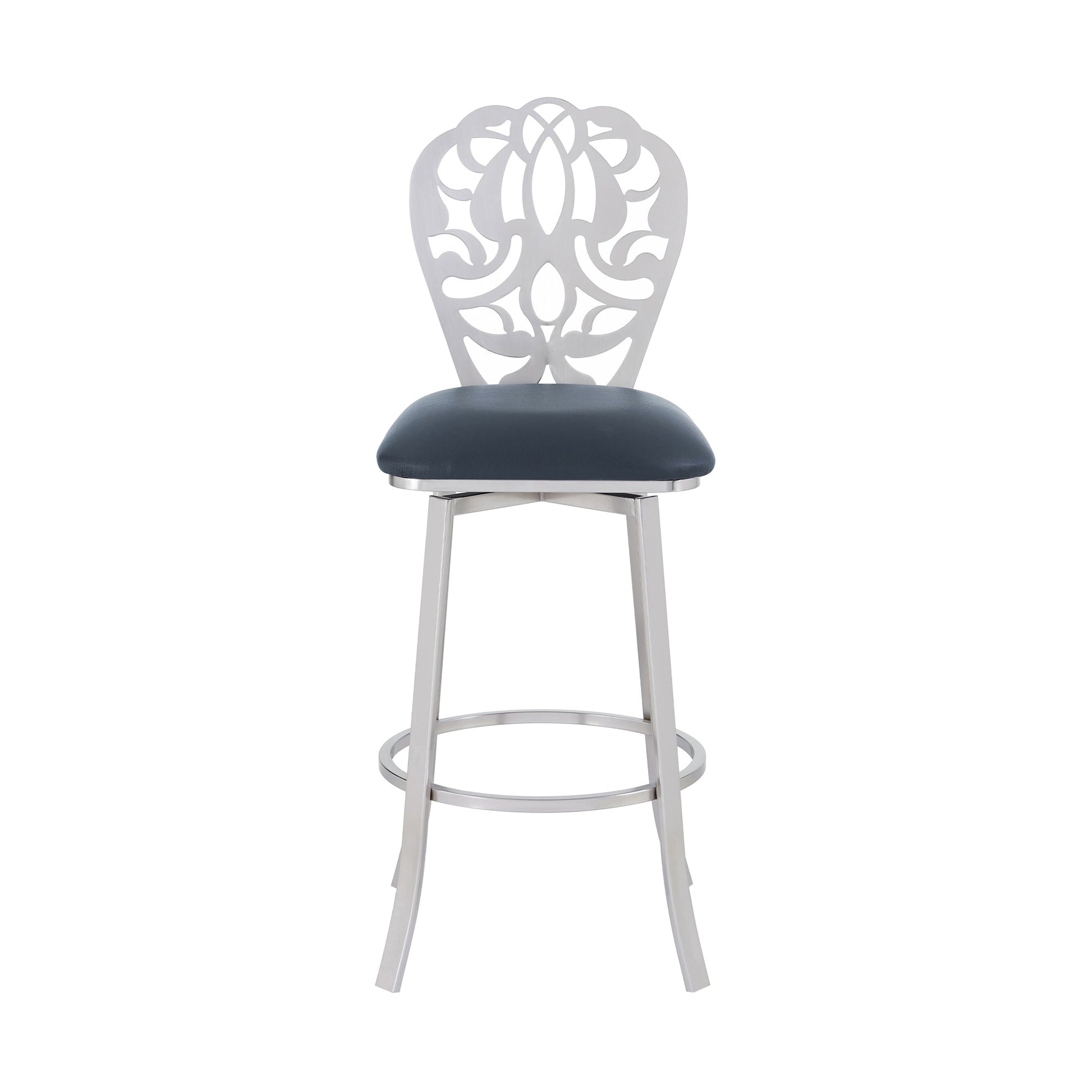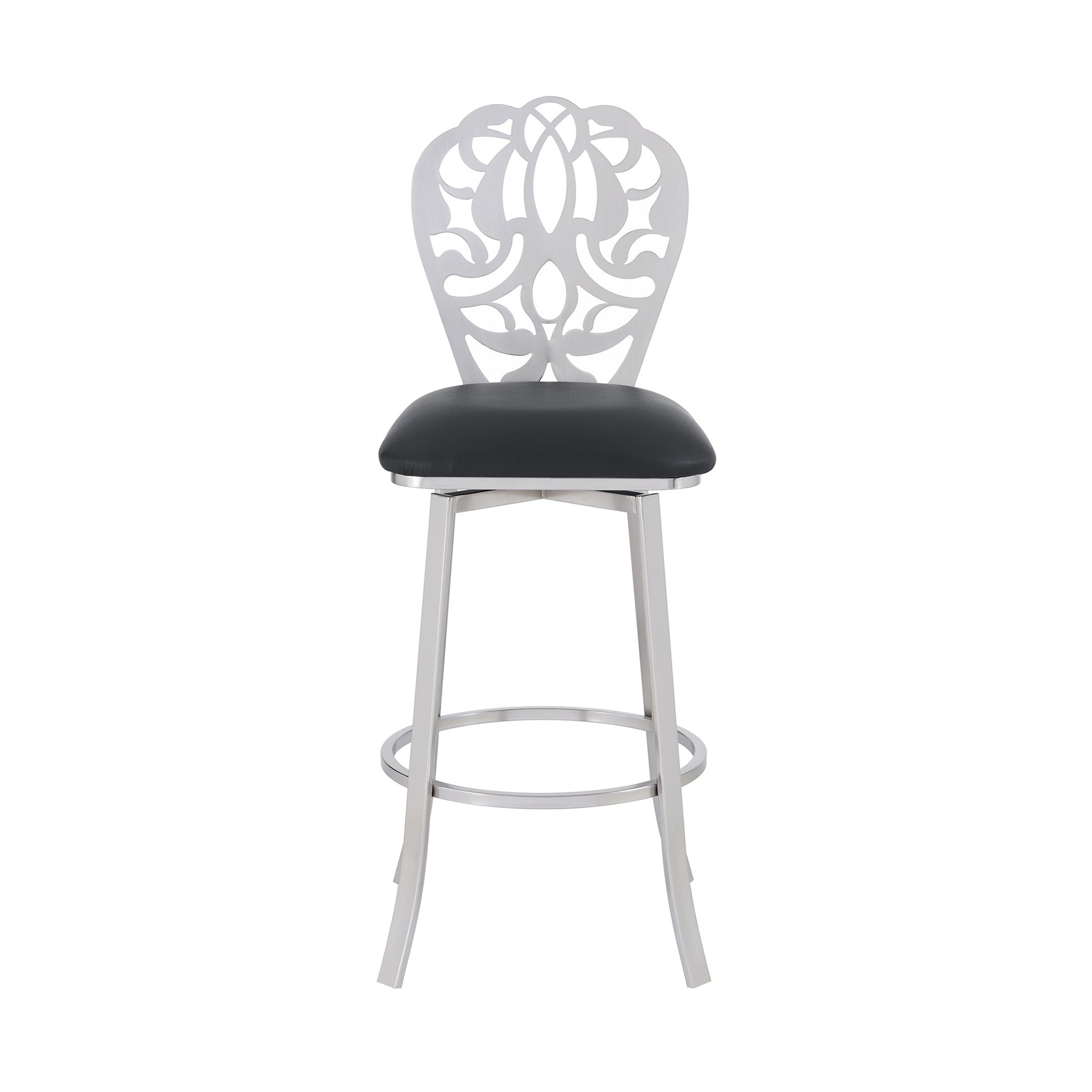 Cherie Contemporary Barstool in Brushed Stainless Steel Finish with Faux Leather