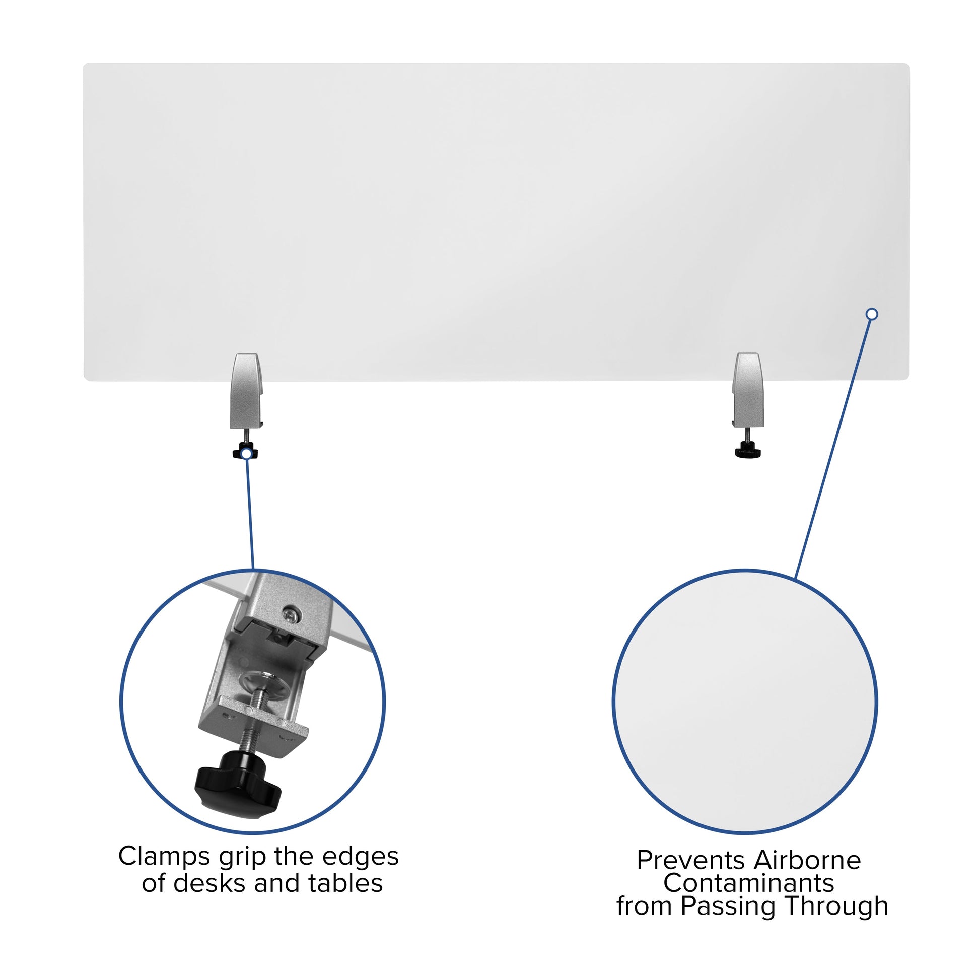 Halle Clear Acrylic Desk Partition, 18"H x 47"L (Hardware Included) Dimensions: 47"W x 0.25"D x 18"H