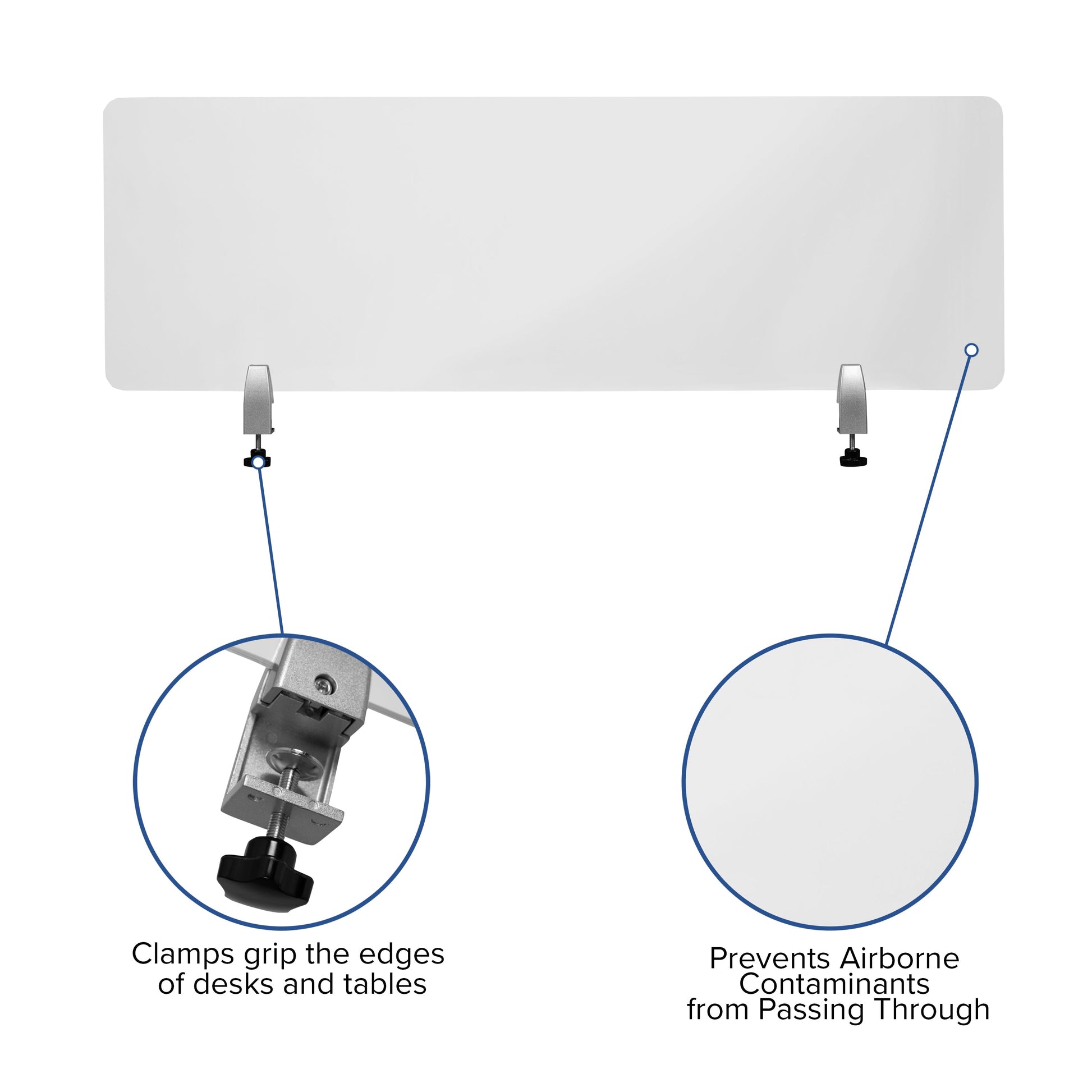 Halle Clear Acrylic Desk Partition, 18"H x 55"L (Hardware Included) Dimensions: 55"W x 0.25"D x 18"H