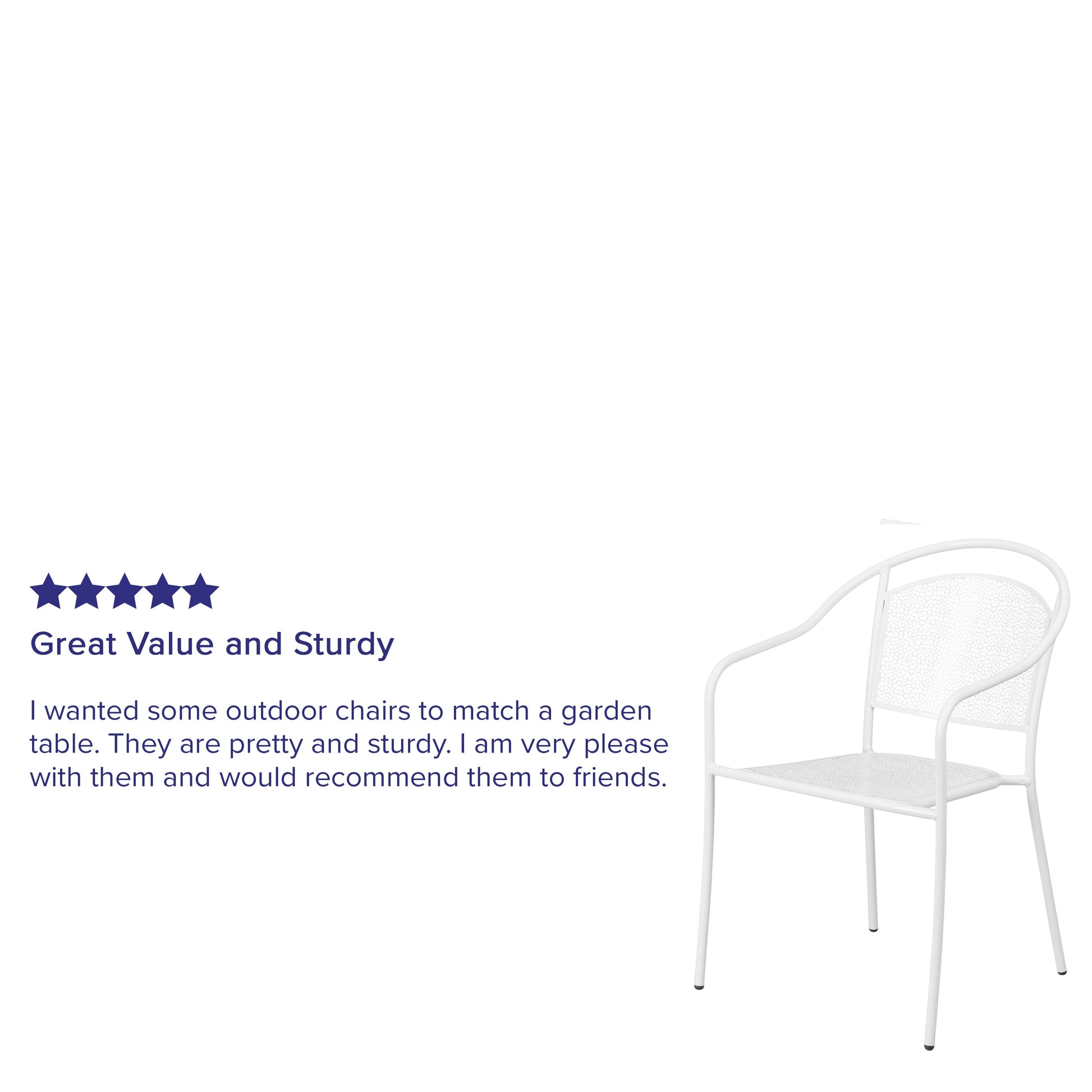 Savor your meals outdoors with family and friends on metal patio chairs.