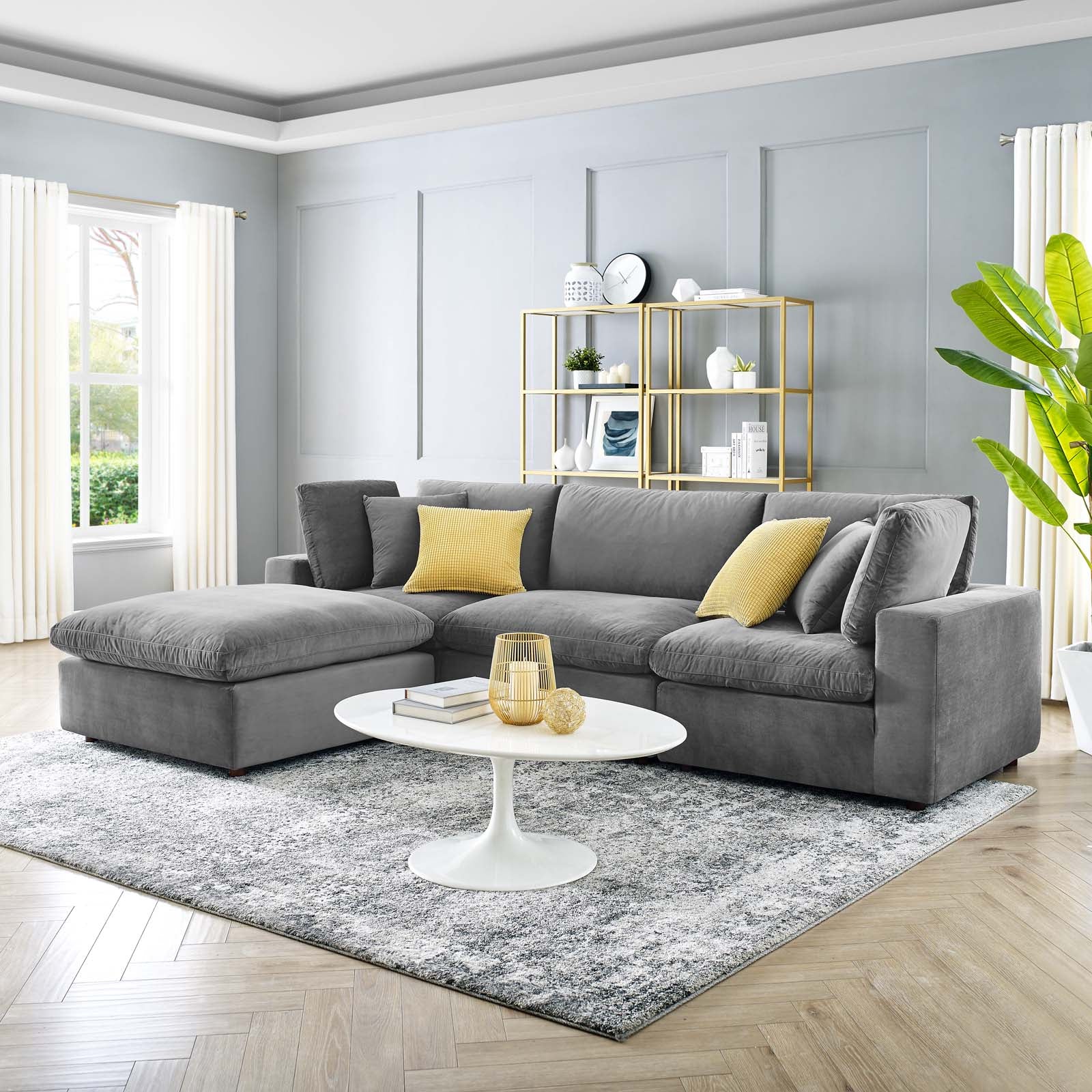 Commix Down Filled Overstuffed Performance Velvet 4-Piece Sectional Sofa Gray EEI-4818-GRY