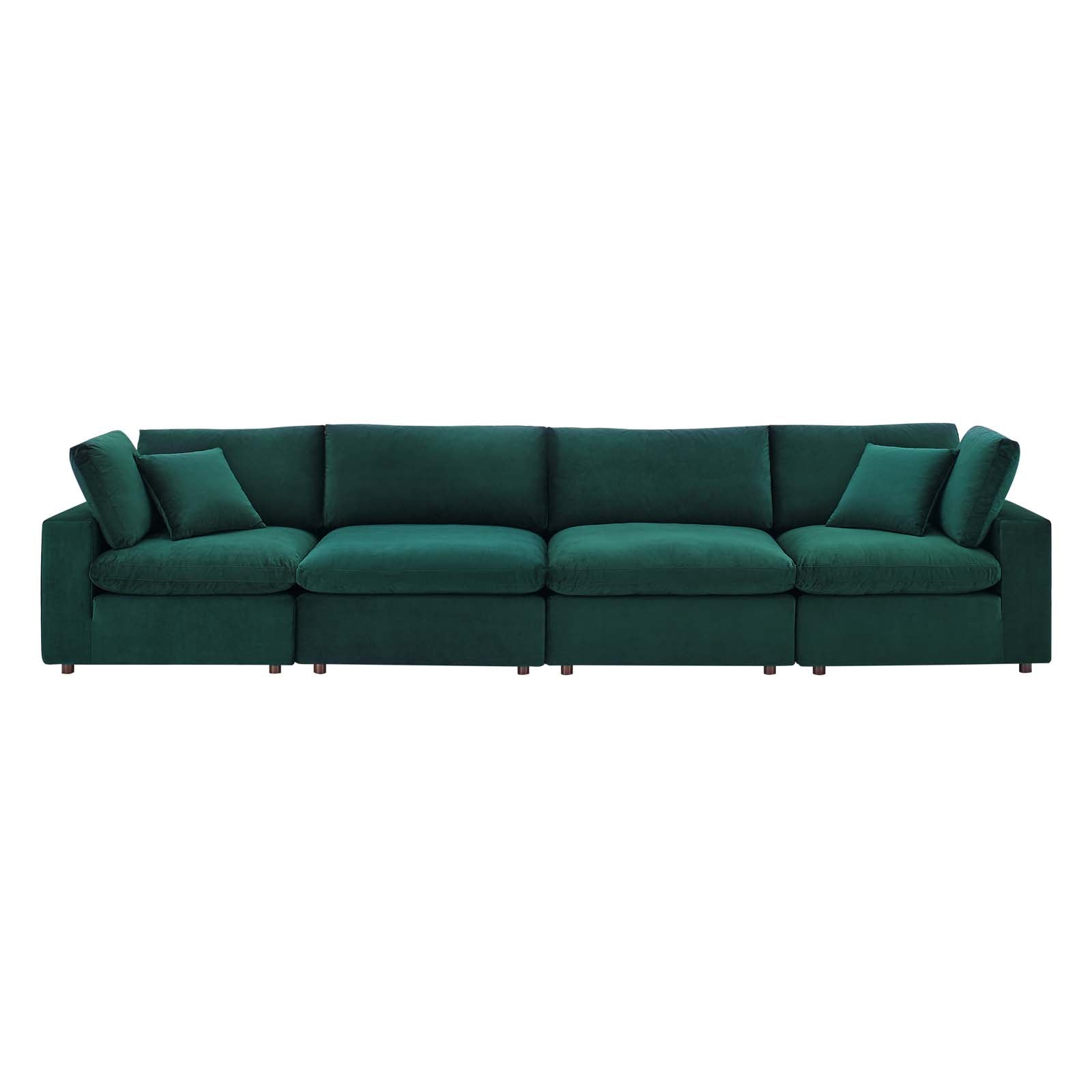 Commix Down Filled Overstuffed Performance Velvet 4-Seater Sofa Green EEI-4819-GRN