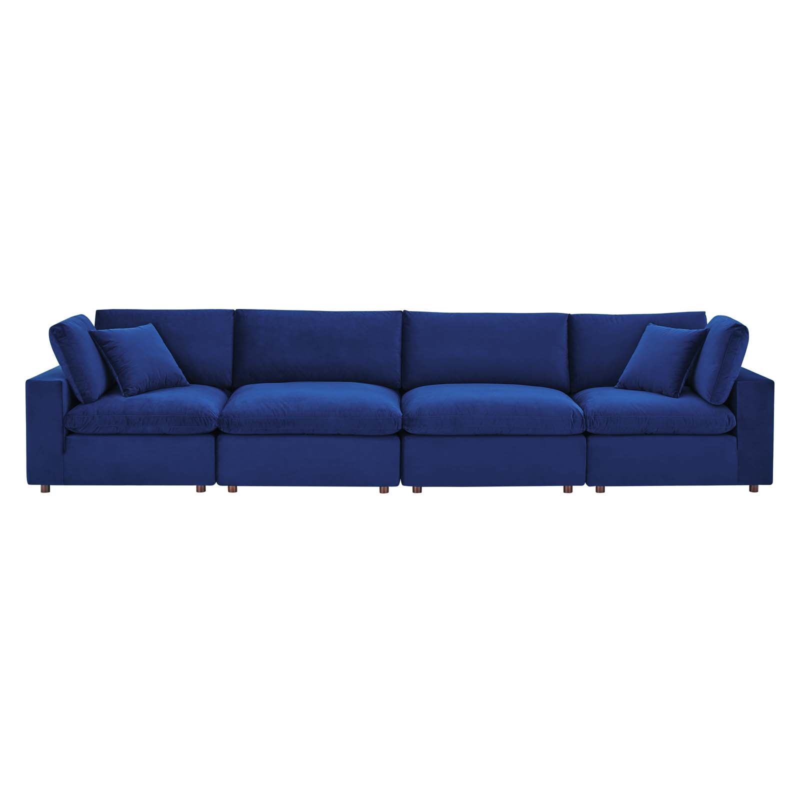 Commix Down Filled Overstuffed Performance Velvet 4-Seater Sofa Navy EEI-4819-NAV