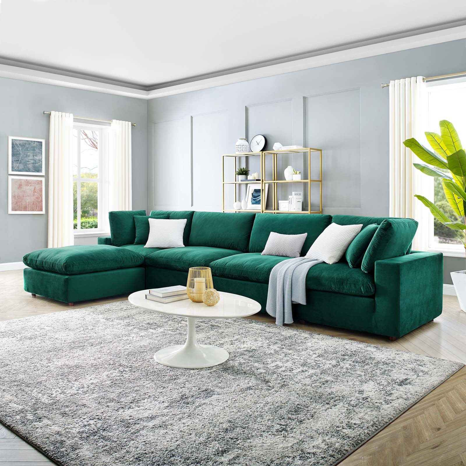 Commix Down Filled Overstuffed Performance Velvet 5-Piece Sectional Sofa Green EEI-4820-GRN