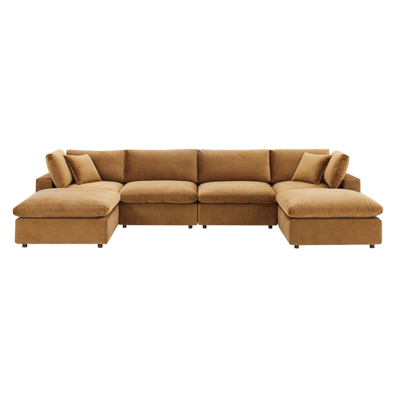 Commix Down Filled Overstuffed Performance Velvet 6-Piece Sectional Sofa Cognac EEI-4821-COG