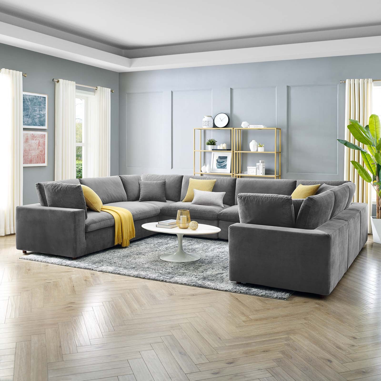 Commix Down Filled Overstuffed Performance Velvet 8-Piece Sectional Sofa Gray EEI-4826-GRY