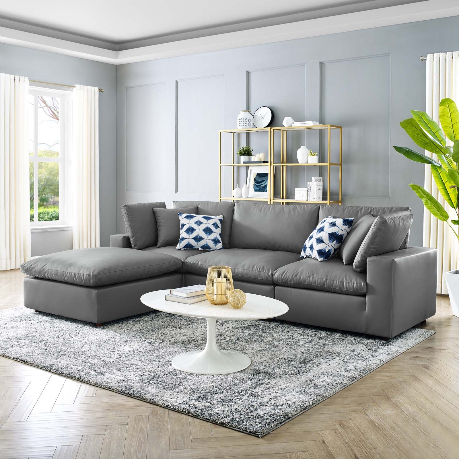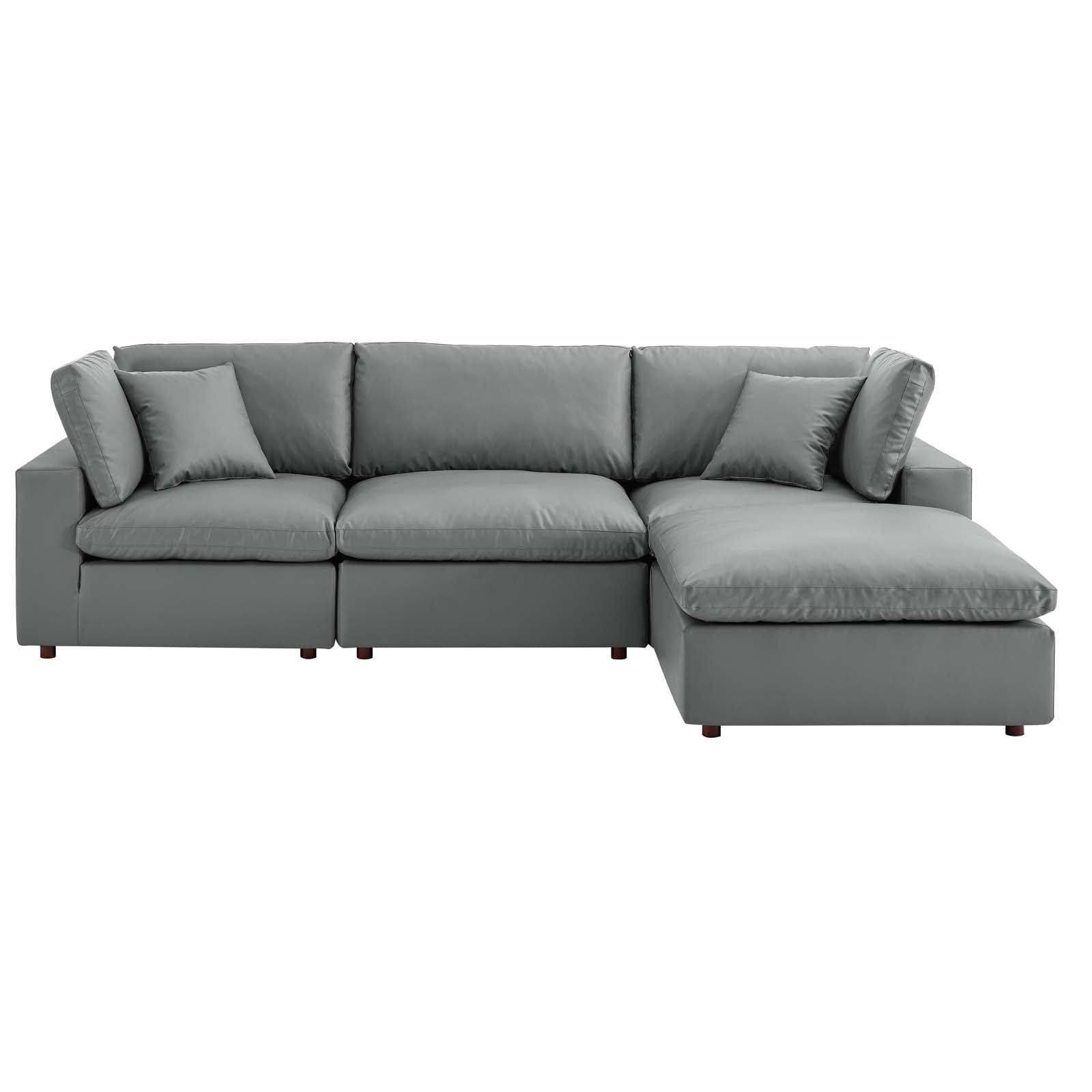 Commix Down Filled Overstuffed Vegan Leather 4-Piece Sectional Sofa Gray EEI-4915-GRY