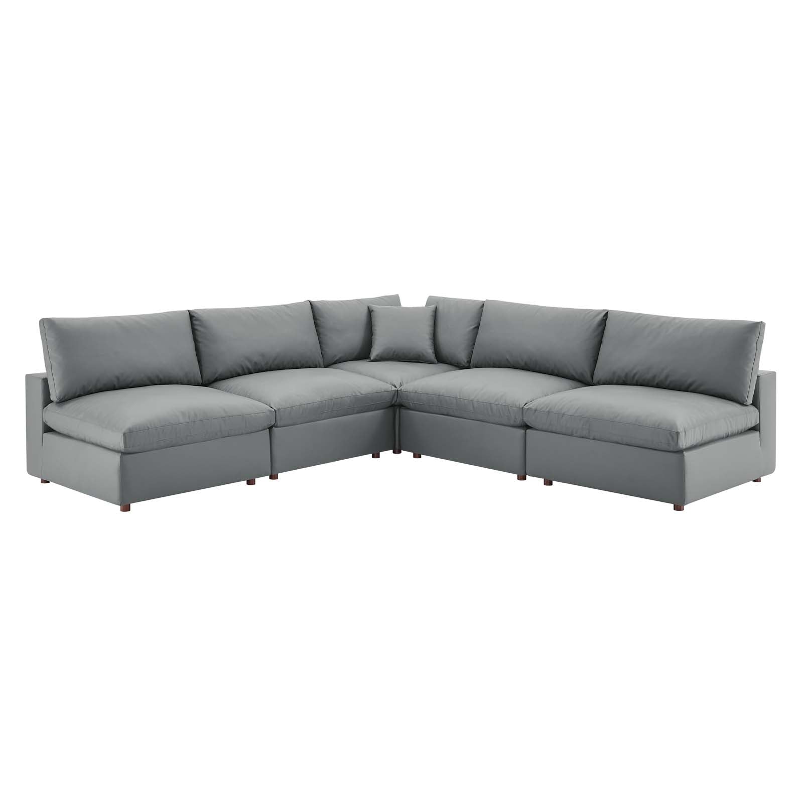 Commix Down Filled Overstuffed Vegan Leather 5-Piece Sectional Sofa Gray EEI-4919-GRY