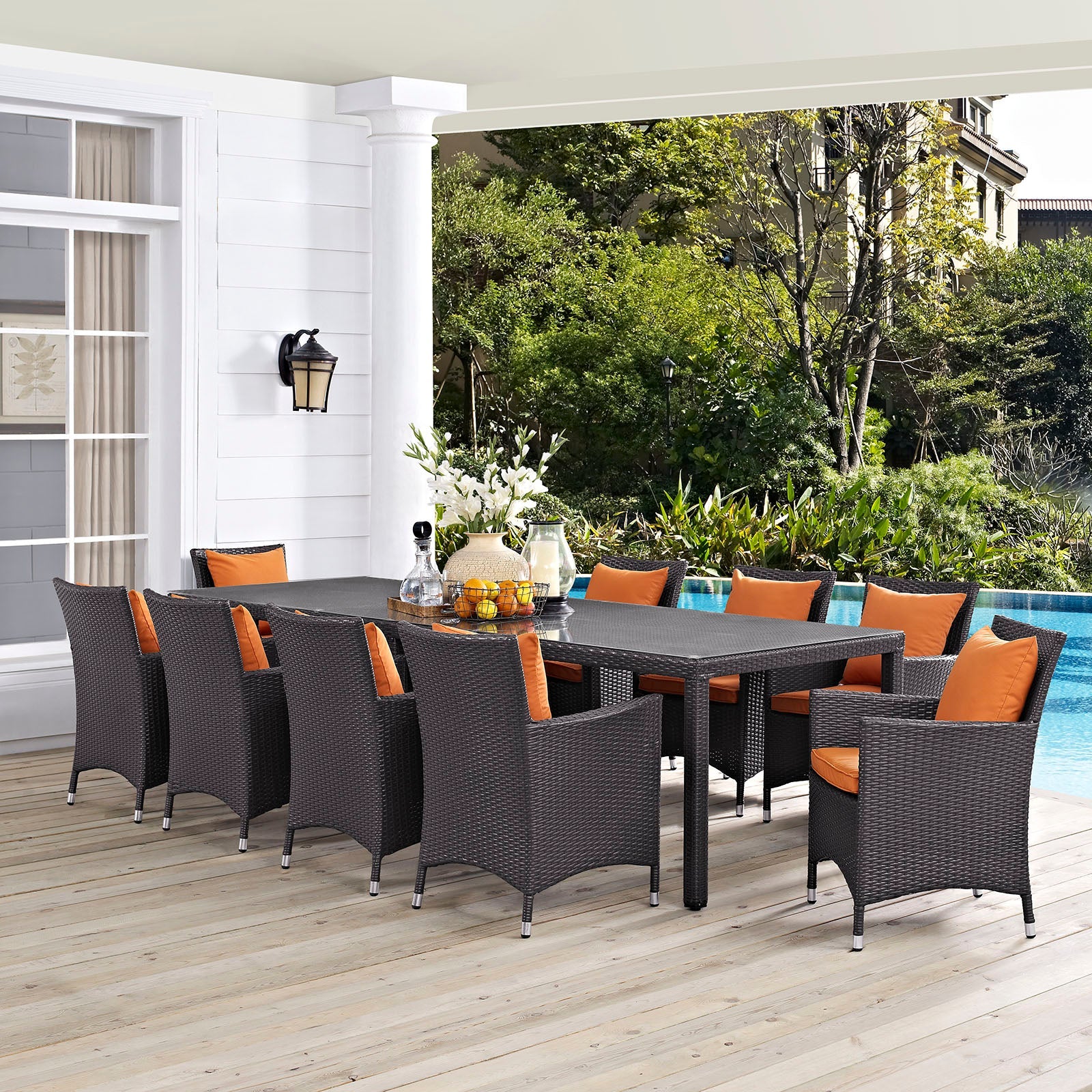 Convene 11 Piece Outdoor Patio Dining Set Espresso Orange EEI-2219-EXP-ORA-SET