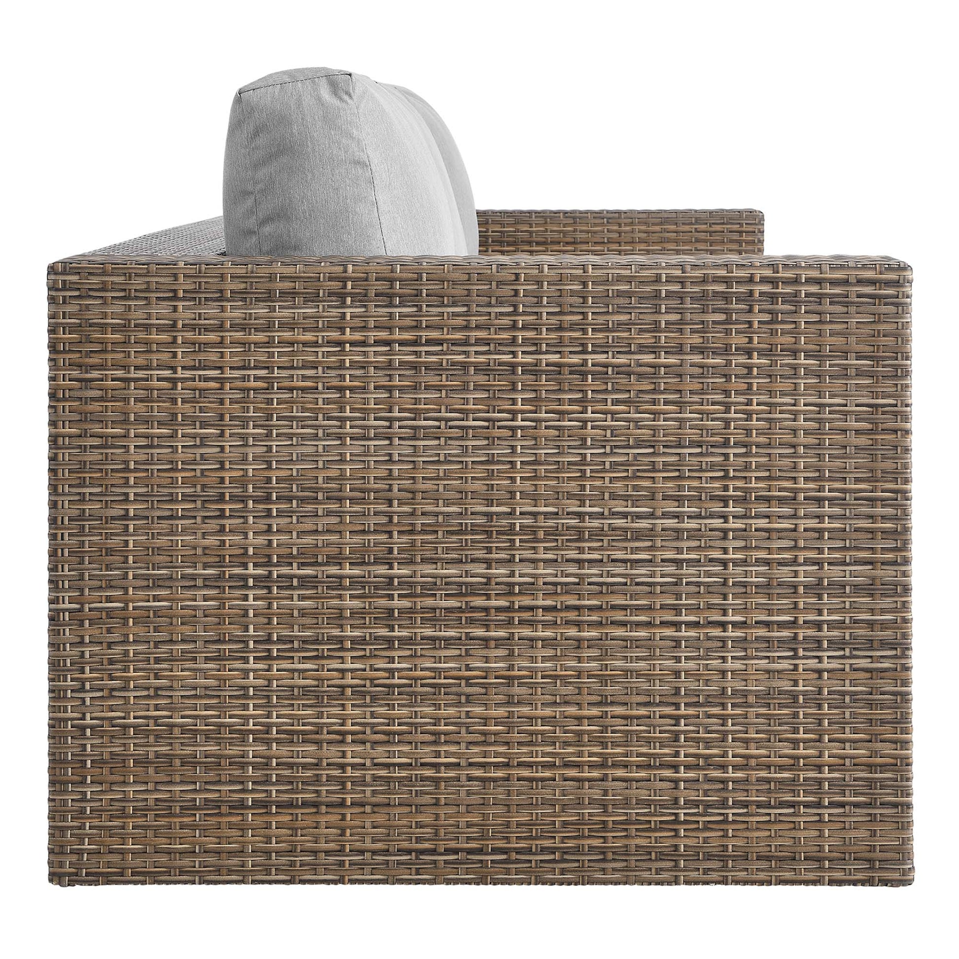 Surround yourself with warm weather and good company with the Convene Outdoor Collection. Made with synthetic rattan weave and powder-coated aluminum frames, this outdoor sofa and coffee table set leaves a positive impression on your guests while enhancing your patio, backyard, porch, or poolside with modern style and appreciated texture. A lasting all-weather addition to your outdoor space, this patio sofa is complete with dense foam padded cushions with water-resistant zippered covers and non-marking foot pads to protect your flooring. The outdoor coffee table features an easy-to-clean tempered glass top. Assembly required. Easy to follow instructions included. Set Includes: 1 Sofa, 1 Coffee Table Overall Product Dimensions: 58.5"L x 88.5"W x 25.5"H