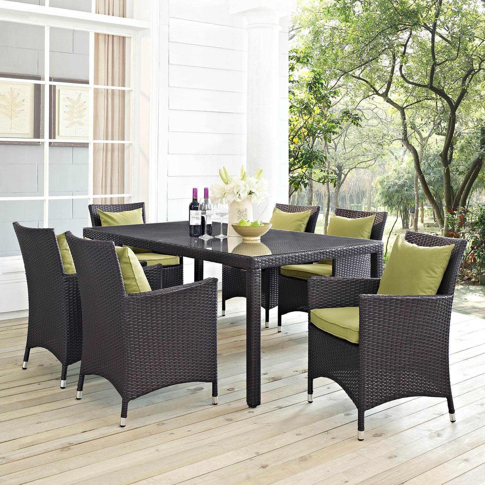 Convene 7 Piece Outdoor Patio Dining Set Espresso Peridot EEI-2199-EXP-PER-SET
