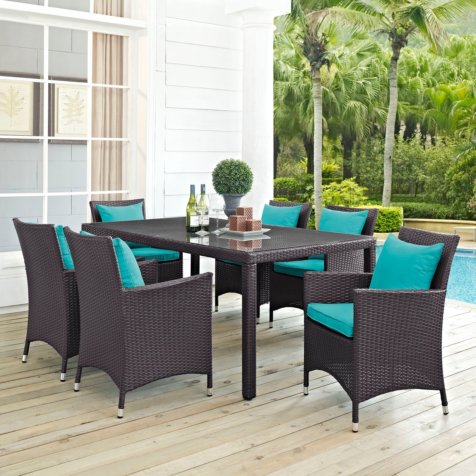Convene 7 Piece Outdoor Patio Dining Set Espresso Turquoise EEI-2199-EXP-TRQ-SET