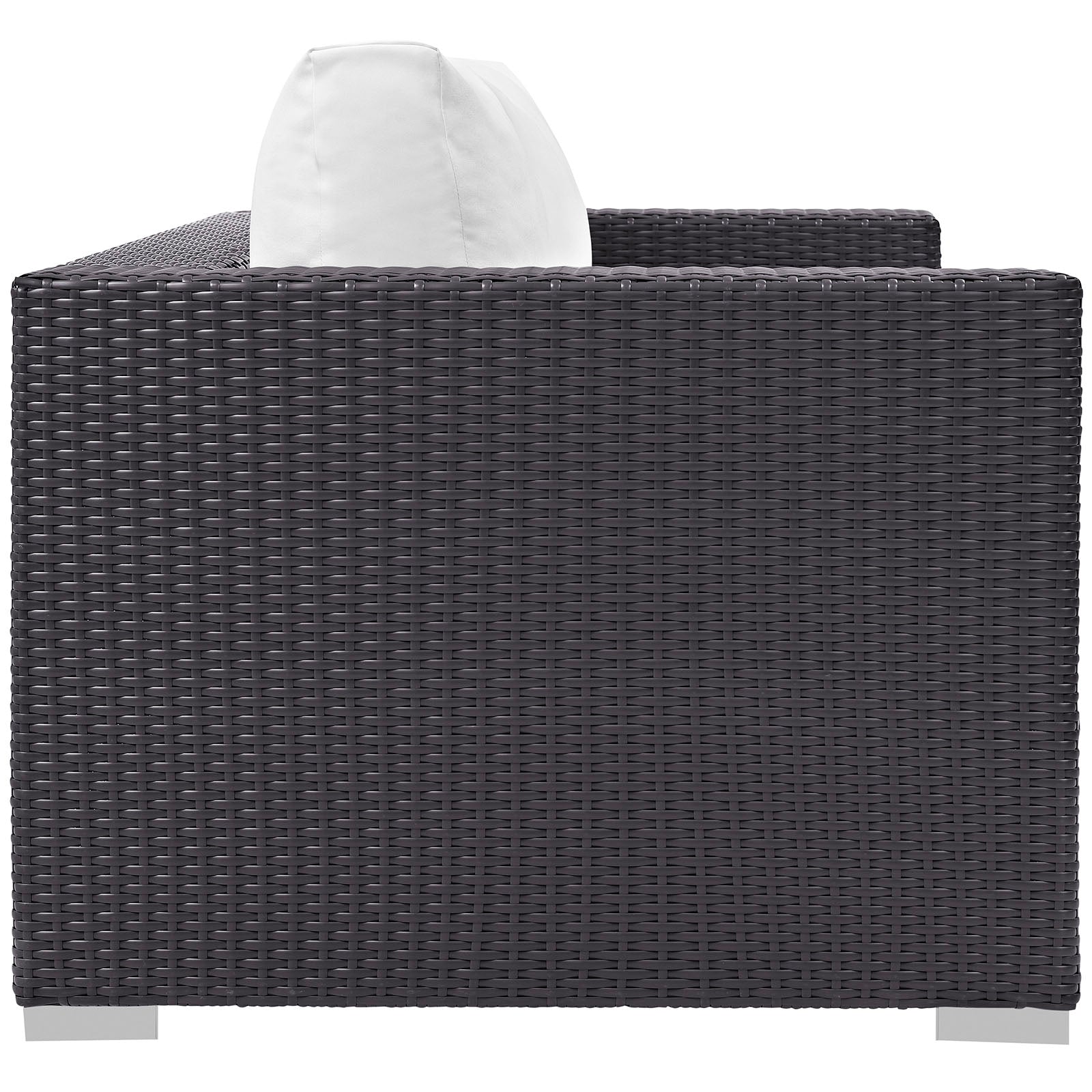 Transform your outdoor space into a stylish retreat with this exquisite patio loveseat from the Convene Outdoor Sectional series. Crafted with a durable synthetic rattan weave and a sturdy powder-coated aluminum frame, this versatile loveseat is designed to adapt to your spontaneous outdoor gatherings. Whether you’re hosting friends for a cozy evening or enjoying a quiet afternoon by the pool, this loveseat enhances the ambiance of any patio, backyard, or poolside setting.