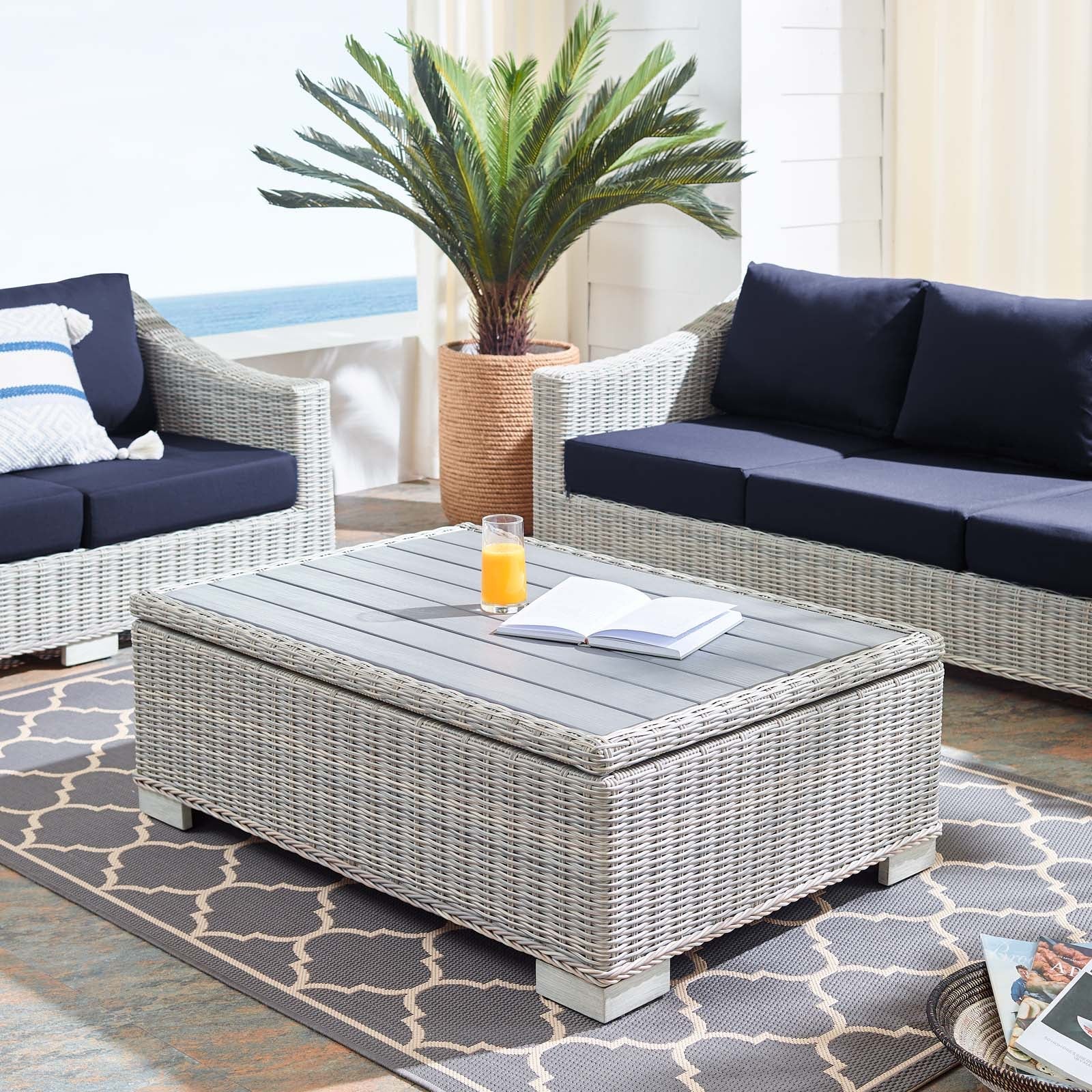 Conway 45" Outdoor Patio Wicker Rattan Coffee Table Light Gray EEI-3982-LGR