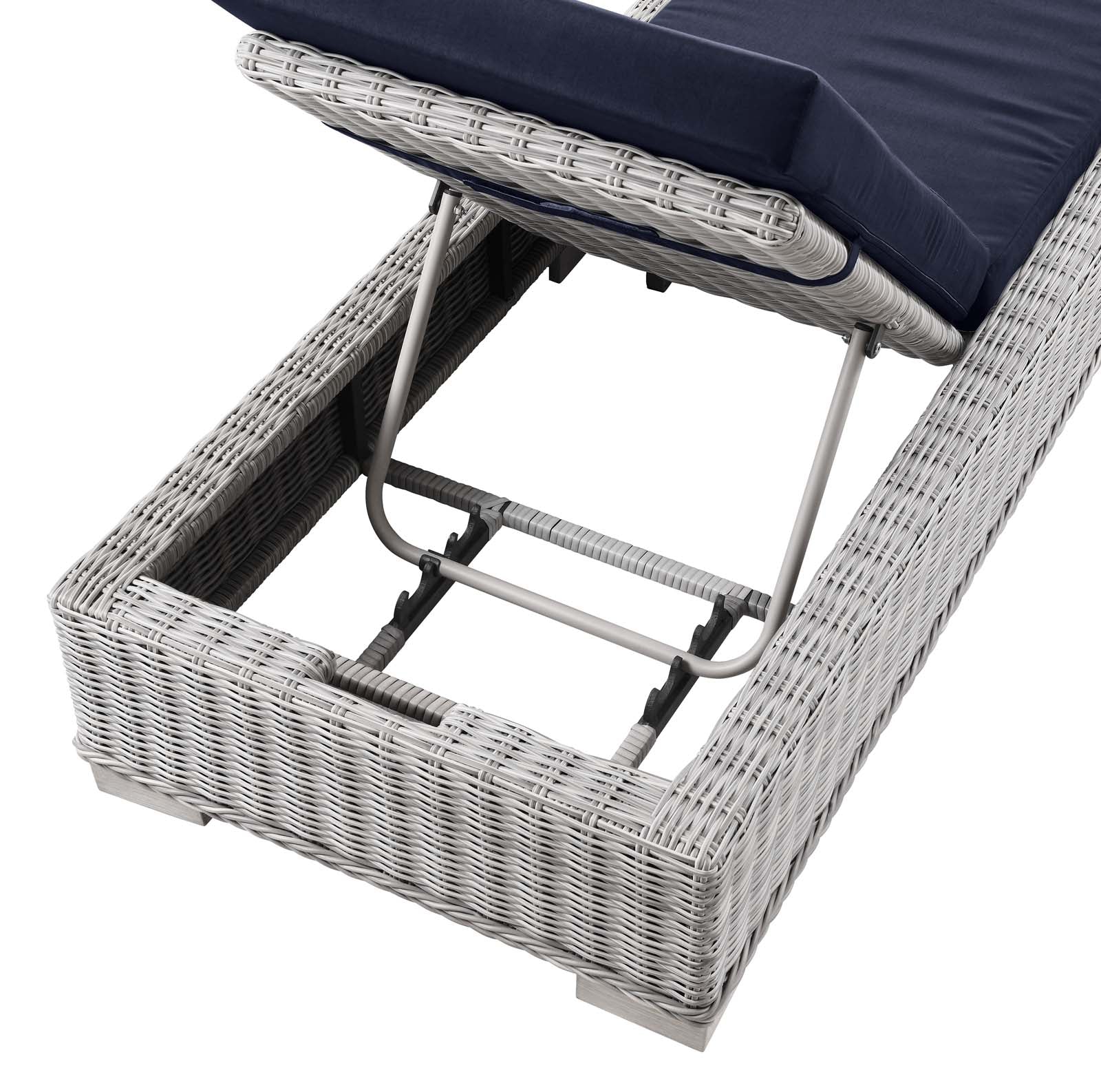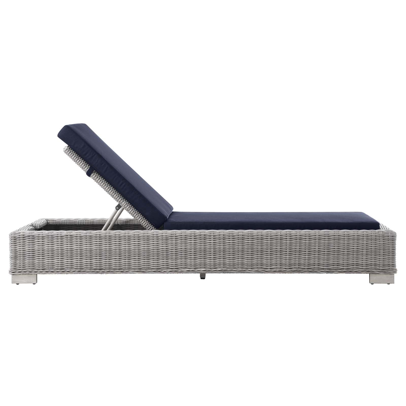 Conway Outdoor Patio Wicker Rattan Chaise Lounge Light Gray Navy EEI-4843-LGR-NAV