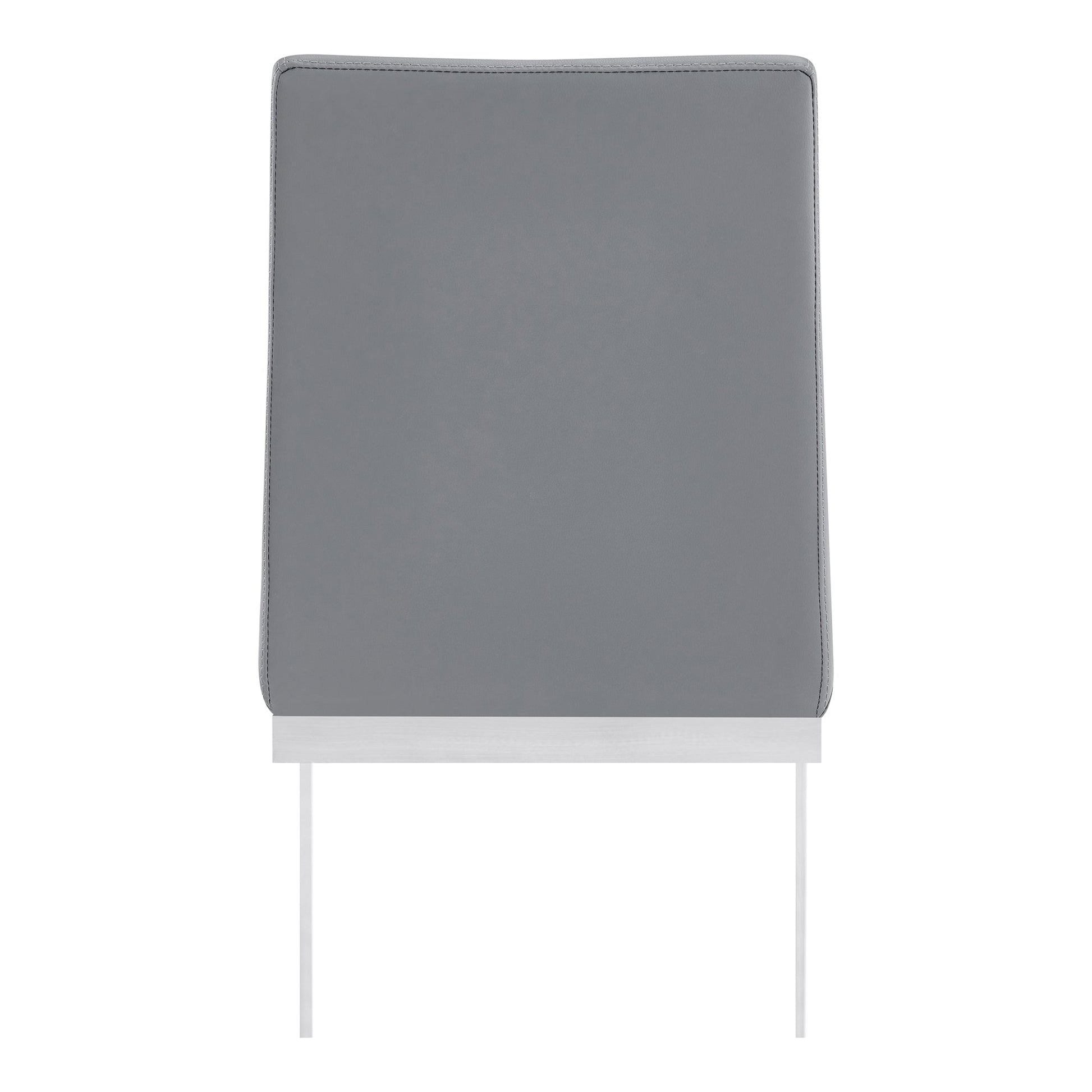 Copen Contemporary Dining Chair in Brushed Stainless Steel and Gray Faux Leather - Set of 2
