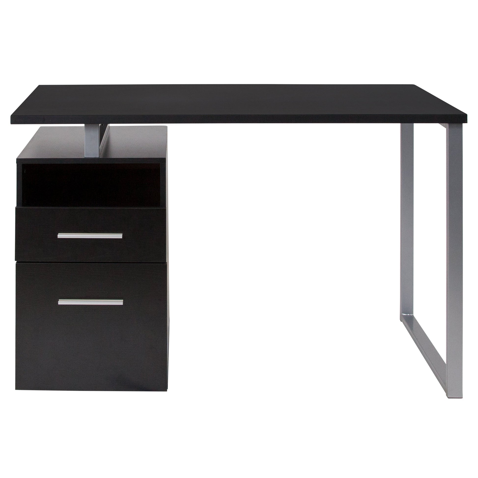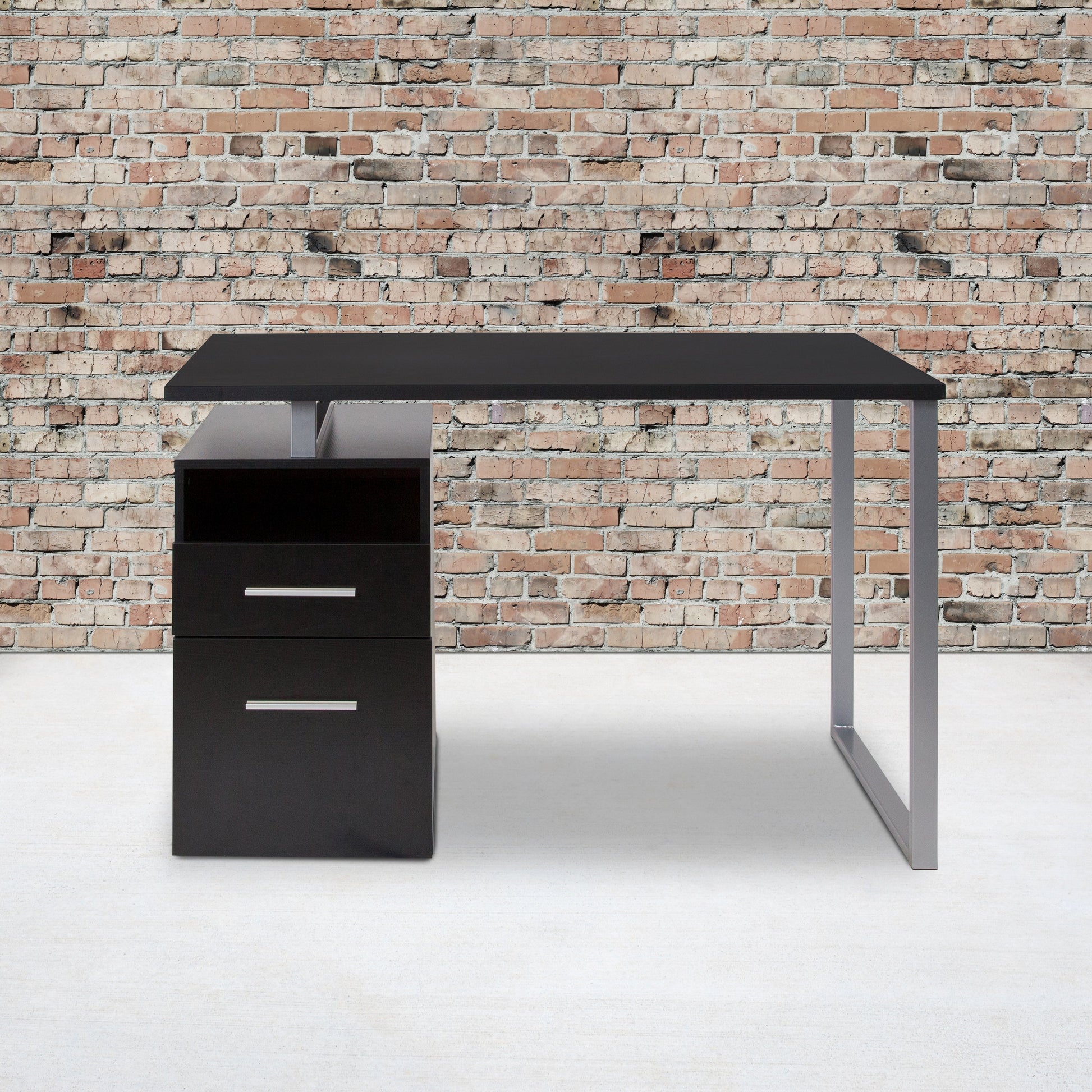 Harwood Dark Ash Wood Grain Finish Computer Desk with Two Drawers and Silver Metal Frame Dimensions: 47"W x 23.5"D x 30.5"H