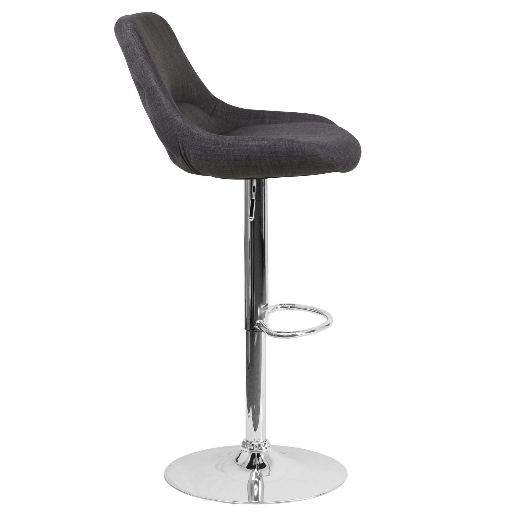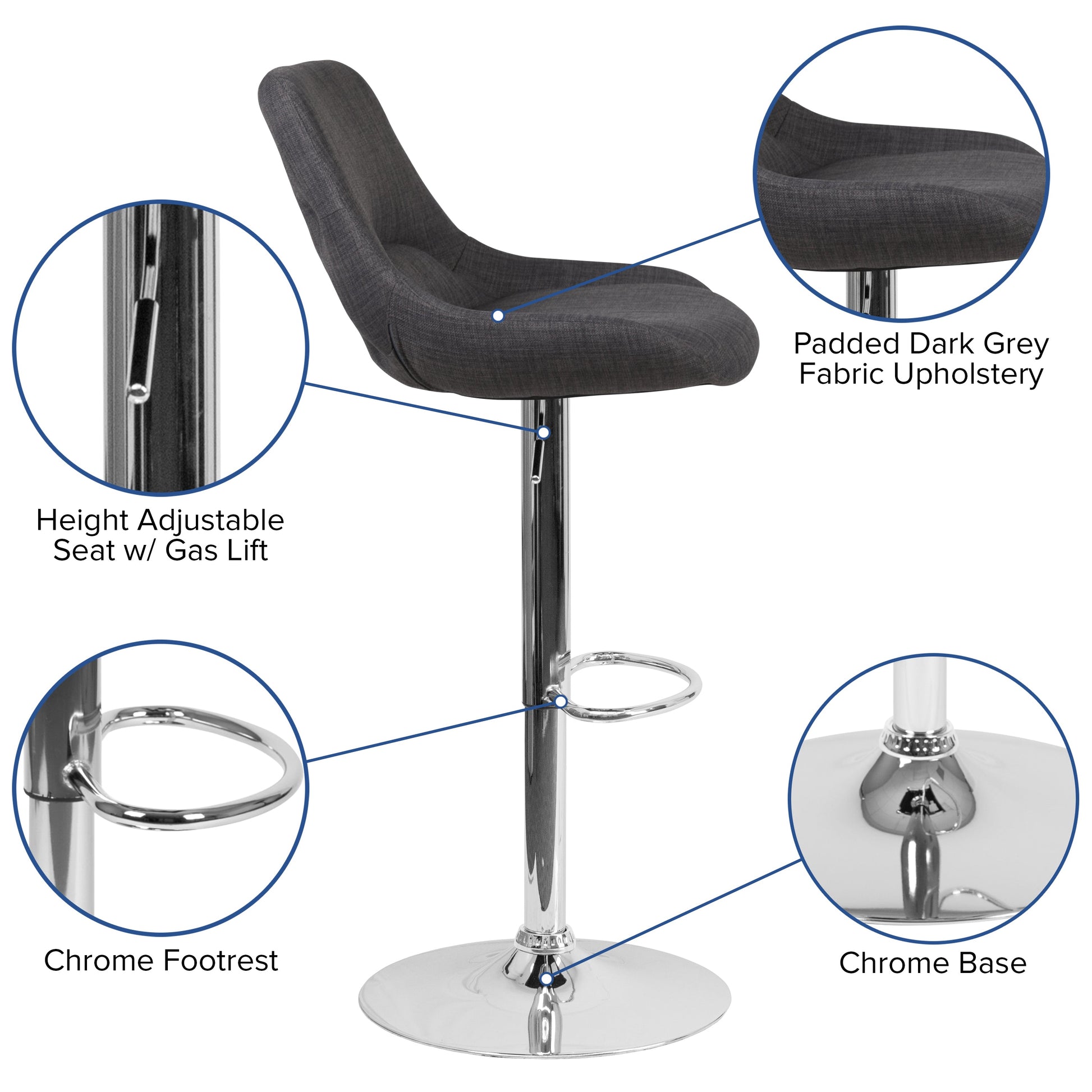 Contemporary Dark Gray Fabric Adjustable Height Barstool with Chrome Base Dimensions: 19"W x 22.5"D x 36.5" - 44.5"H