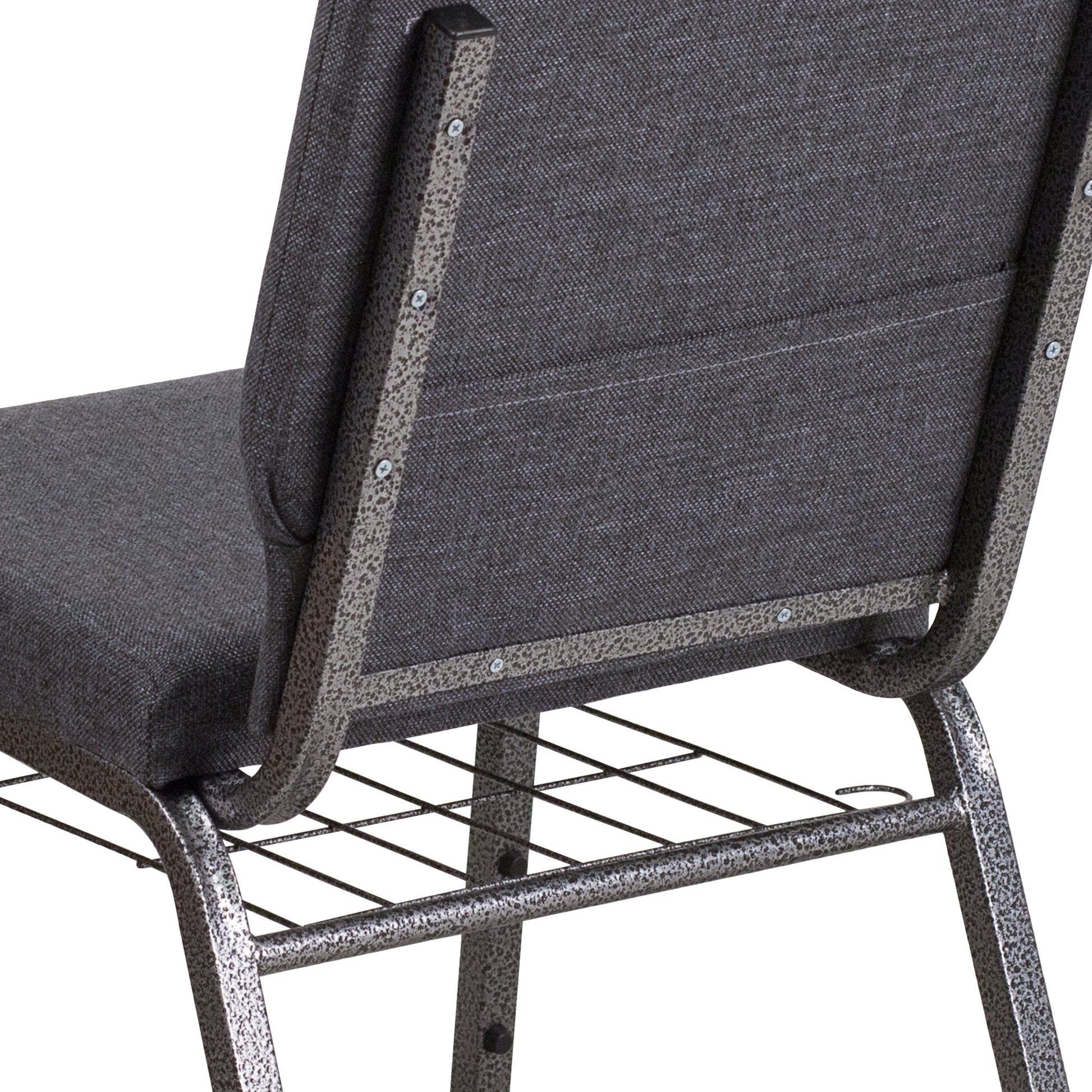 HERCULES Series 18.5''W Church Chair in Dark Gray Fabric with Book Rack - Silver Vein Frame Dimensions: 19.25"W x 25"D x 33.25"H