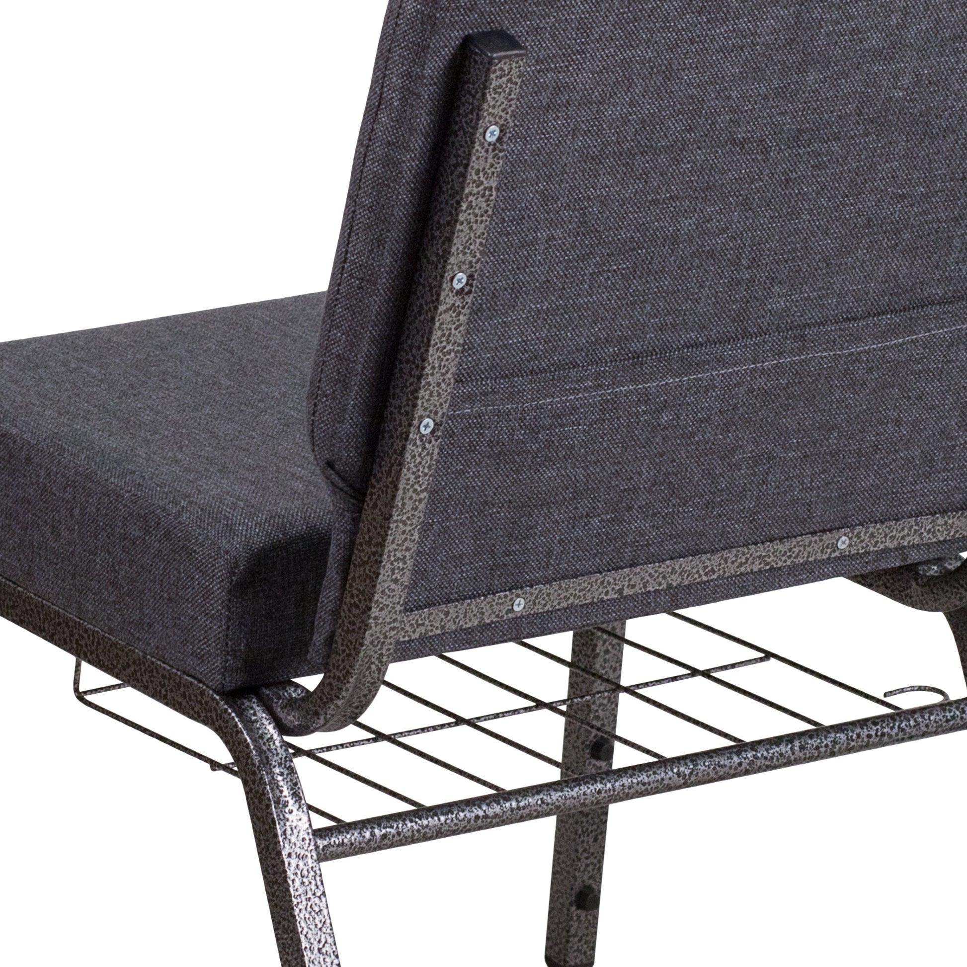 HERCULES Series 21''W Church Chair in Dark Gray Fabric with Book Rack - Silver Vein Frame Dimensions: 21.25"W x 25"D x 33"H