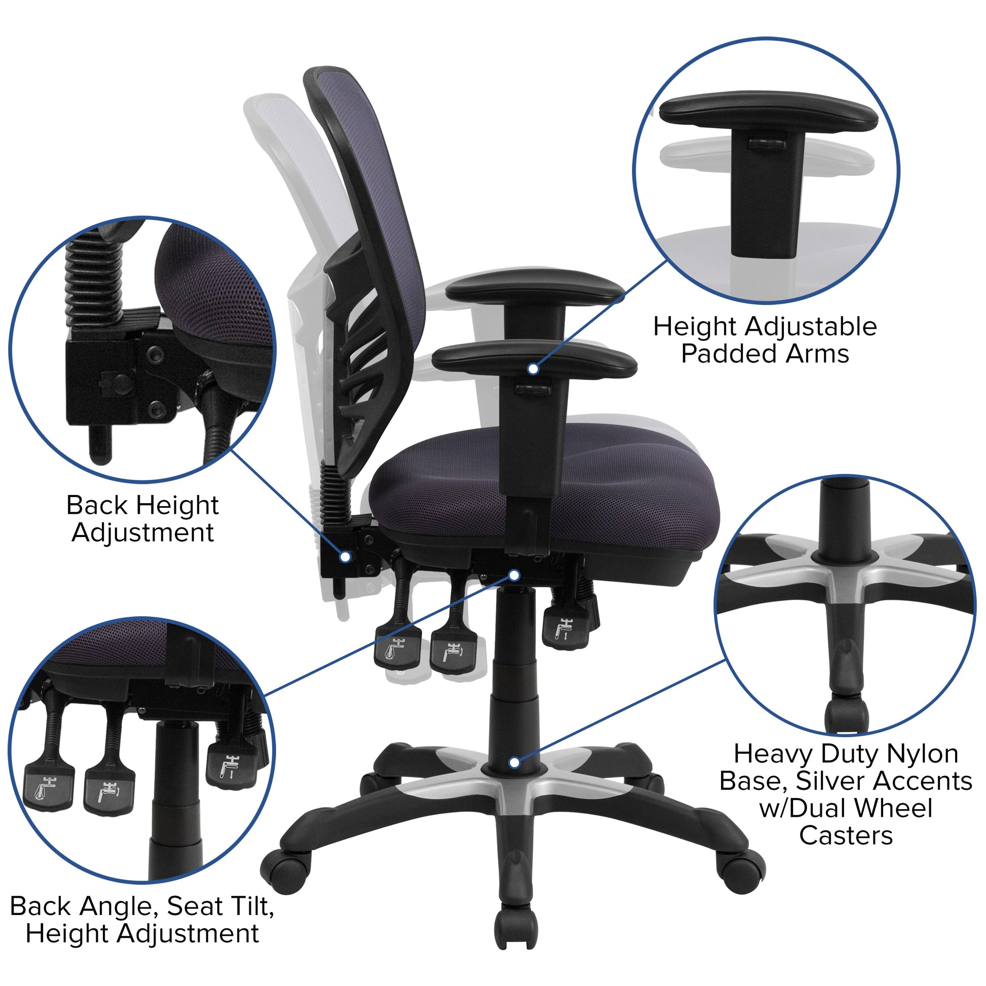 Nicholas Mid-Back Dark Gray Mesh Multifunction Executive Swivel Ergonomic Office Chair with Adjustable Arms Dimensions: 25.5"W x 24.5" - 27"D x 37" - 44.25"H