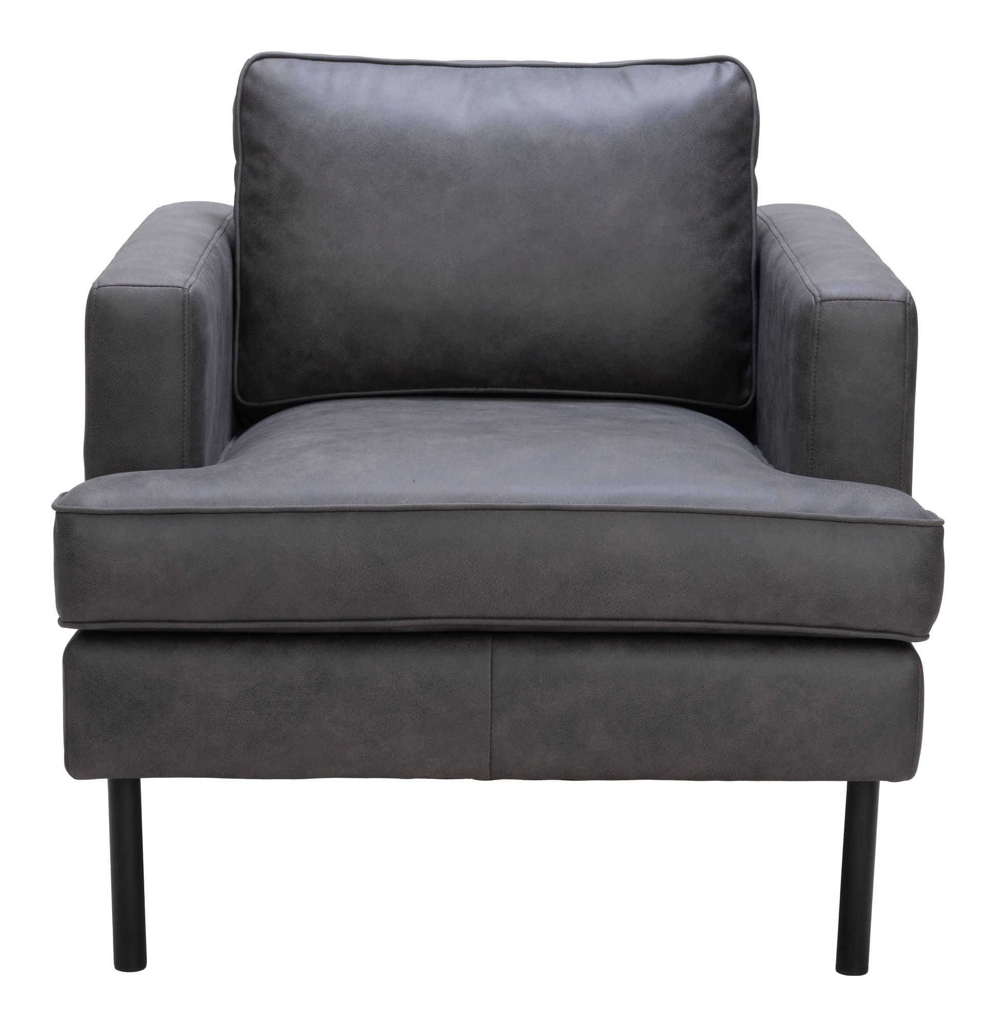 Classically modern in shape and design, the Decade Arm Chair is comfortable and stylish, wrapped in durable vinyl and on powder coated steel legs. This piece fits in any home or office lobby.