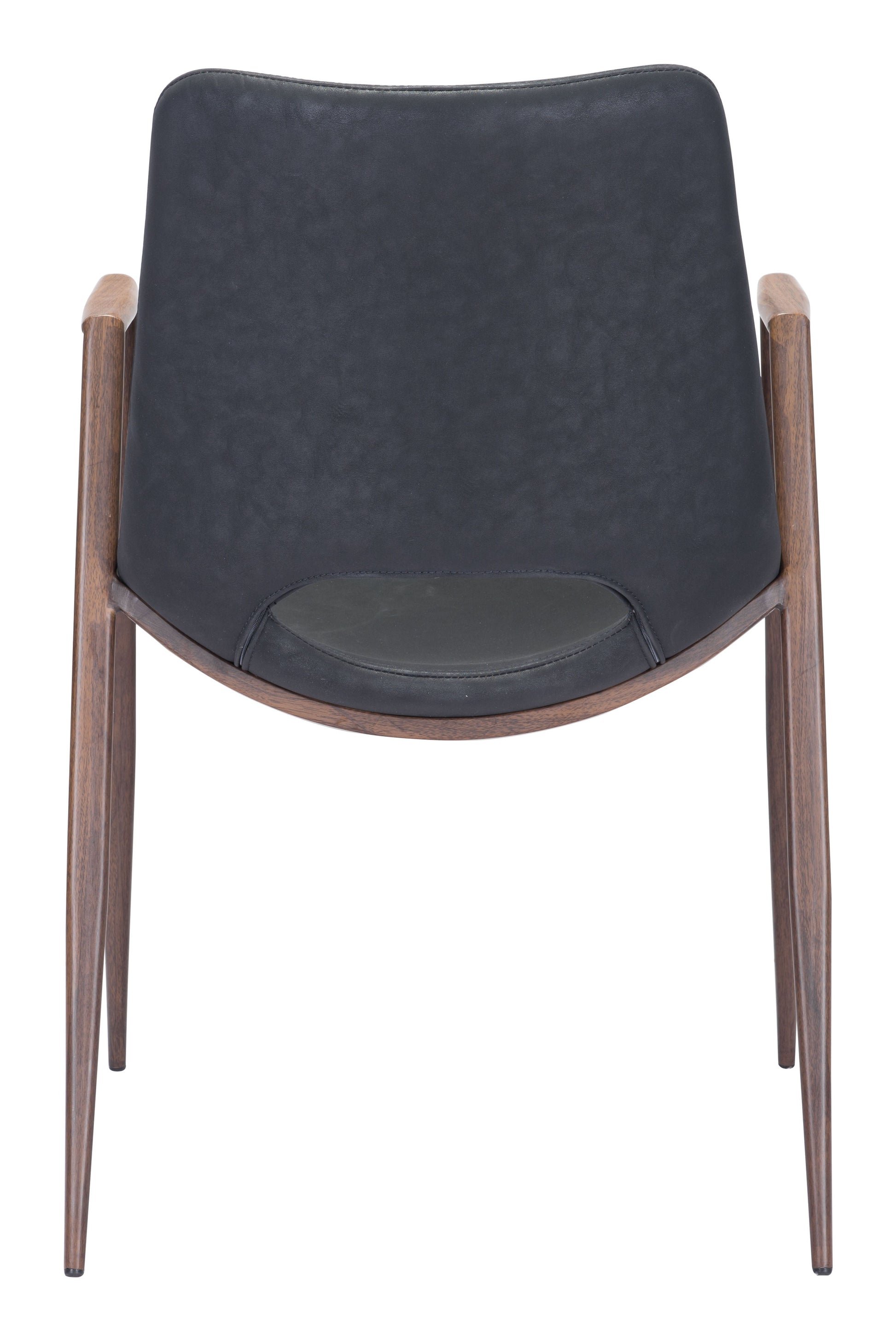 This dining char has mid century modern urban lines and looks great in any space, with a heavy duty vinyl covering sturdy steel frame and finished legs in walnut heat-transfer vinyl wrapped steel frame, fits in any home kitchen, dining area, or bar and is durable for hospitality use.