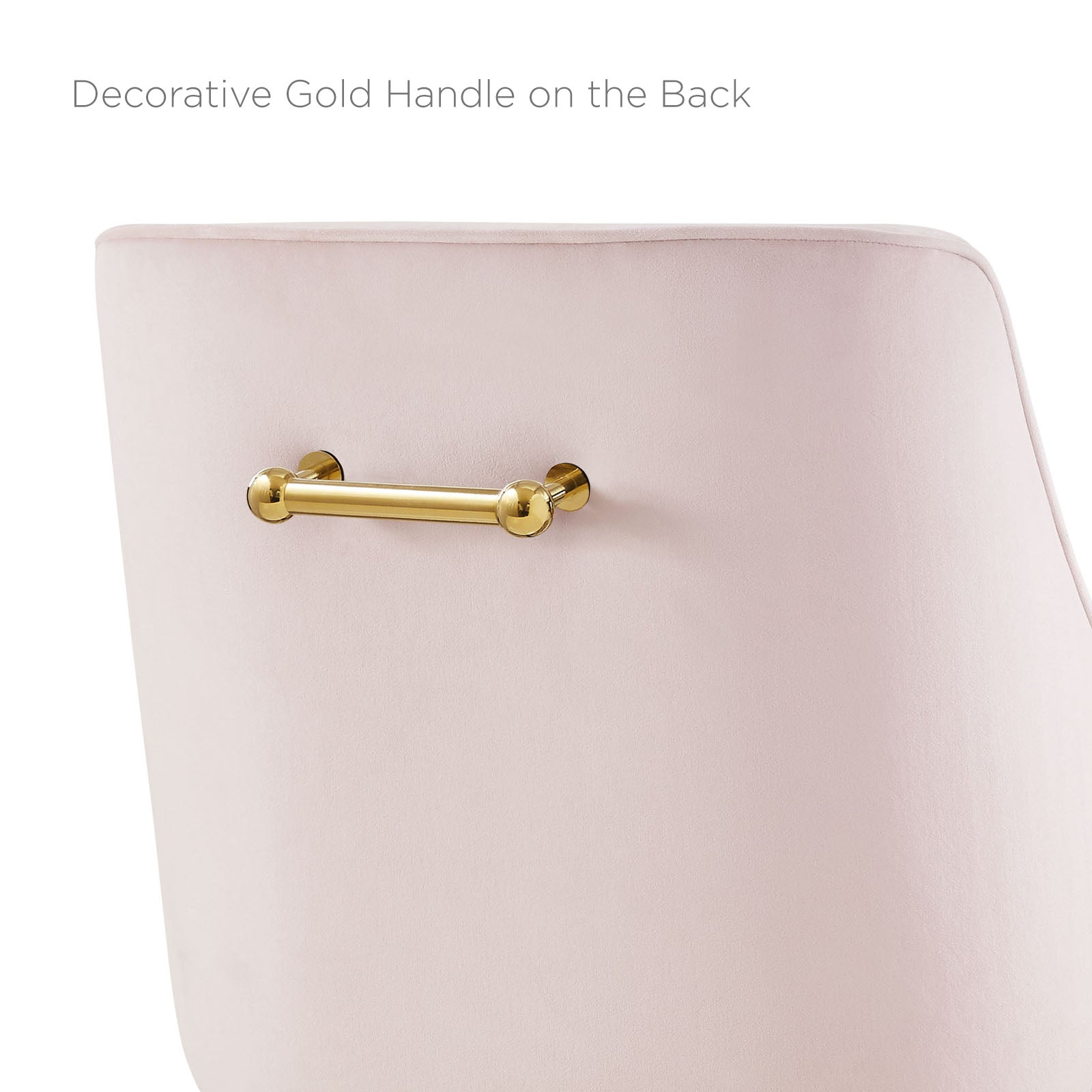 The dashingly handsome Discern Performance Velvet Bar Stool brings substance and charisma into your dining space. Standing confidently on brushed gold stainless steel legs braced by a matching stretcher, the Discern Bar Stool enthralls with subtle details and a stylish retro modern vibe that fits well with mid-century modern decor. Stain-resistant performance velvet upholstery envelopes the seat and backrest of this bar-height stool, perfect for a pub table or kitchen bar. The curved armrest and precise tailoring signal an attention to detail that makes this velvet bar stool irresistible. The Discern Bar Stool features protective foot pads, a decorative handle, and dense foam padding.