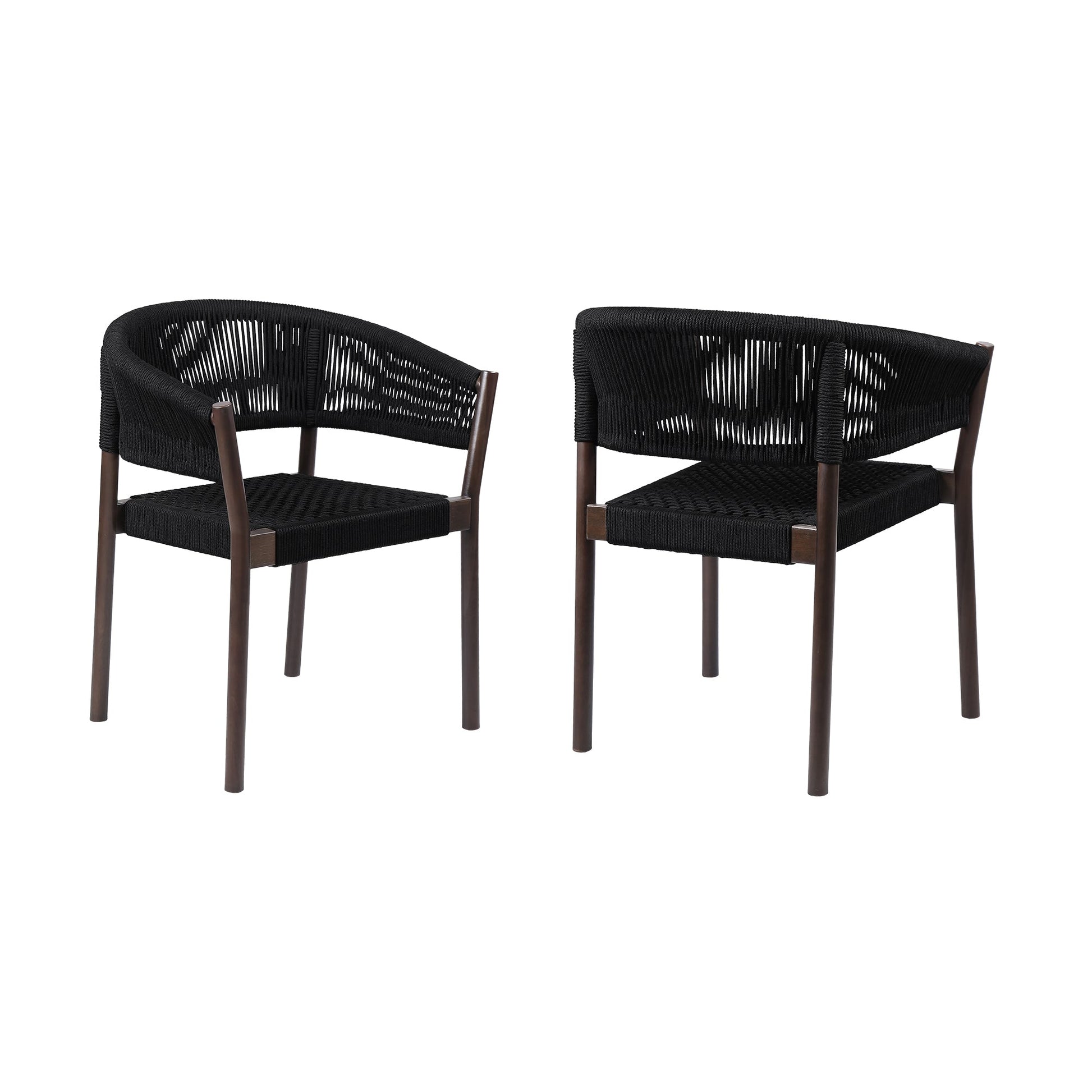 Doris Indoor Outdoor Dining Chair in Dark Eucalyptus Wood with Black Rope - Set of 2