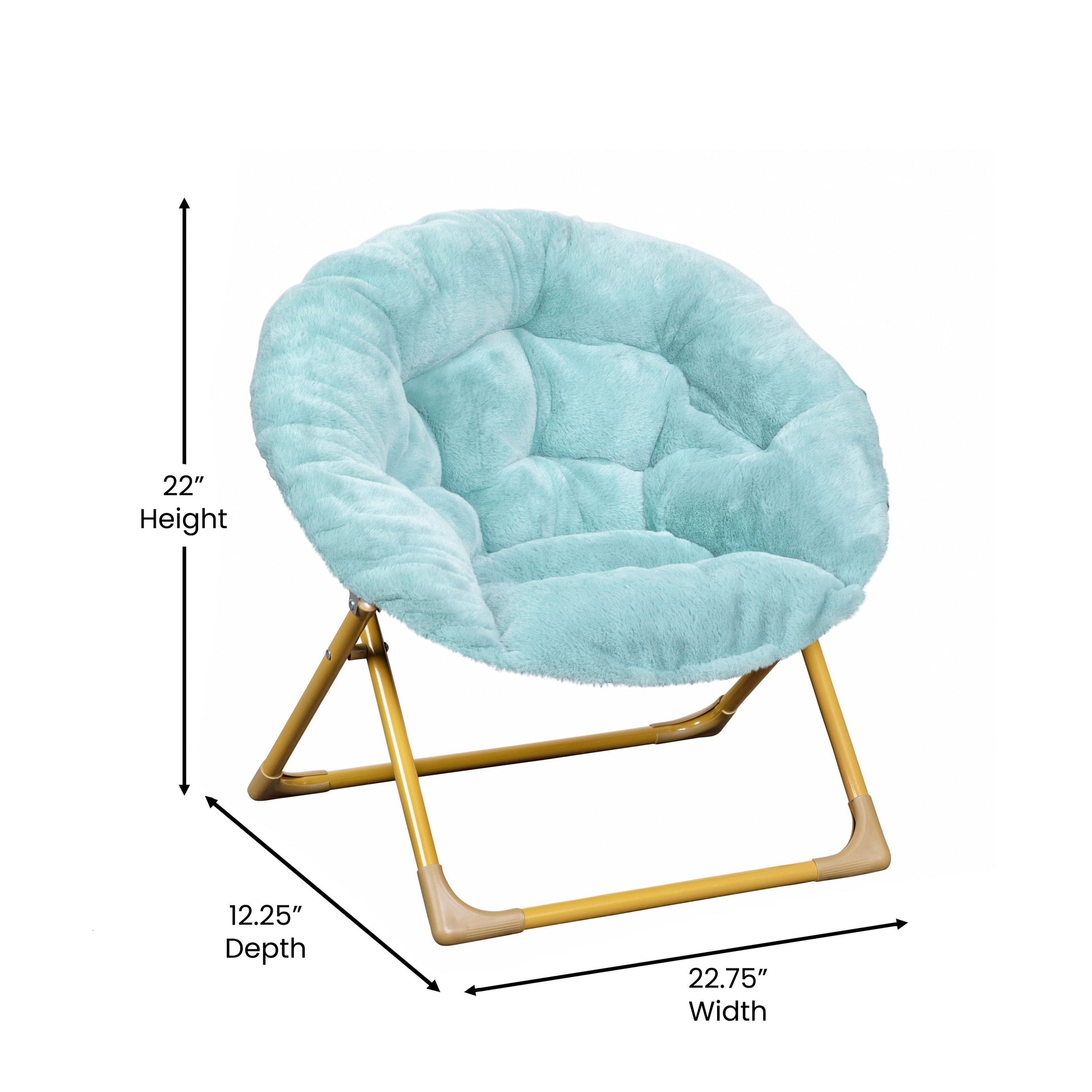 Gwen 23" Kids Cozy Mini Folding Saucer Chair, Faux Fur Moon Chair for Toddlers and Bedroom, Dusty Aqua/Soft Gold Dimensions: 22.75"W x 12.25"D x 22"H