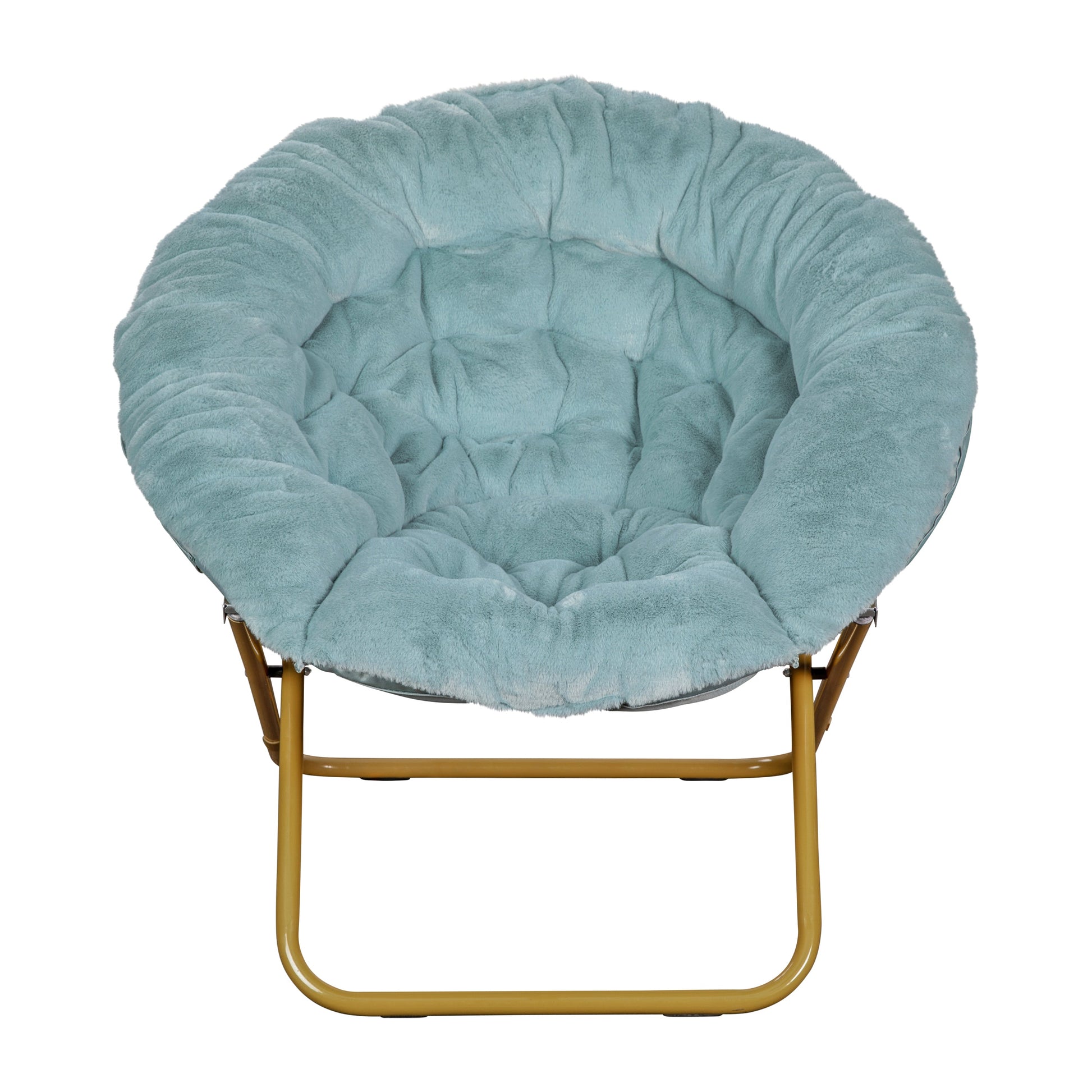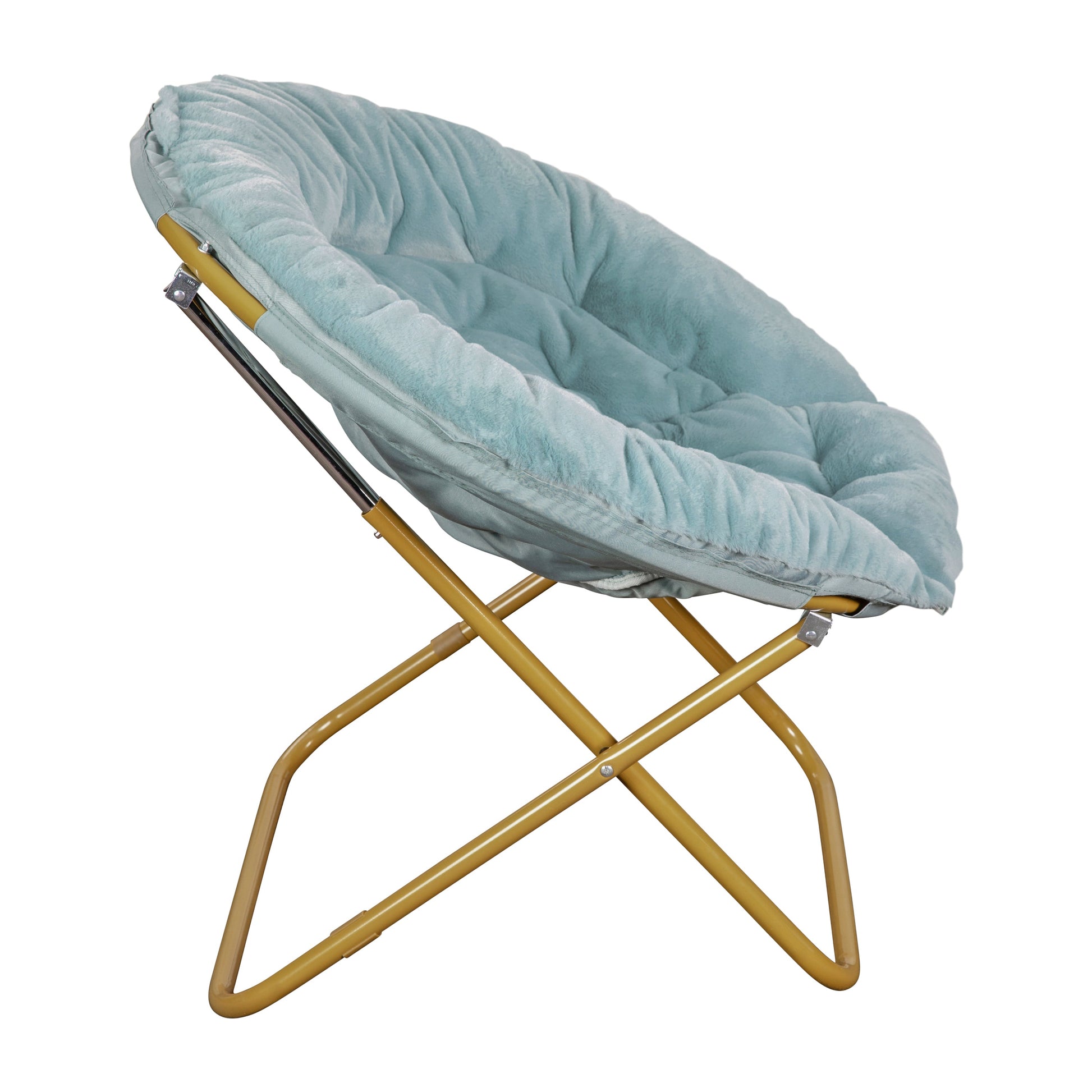 Gwen 38" Oversize Portable Faux Fur Folding Saucer Moon Chair for Dorm and Bedroom, Dusty Aqua Faux Fur/Soft Gold Frame Dimensions: 35.75"W x 31"D x 33.5"H