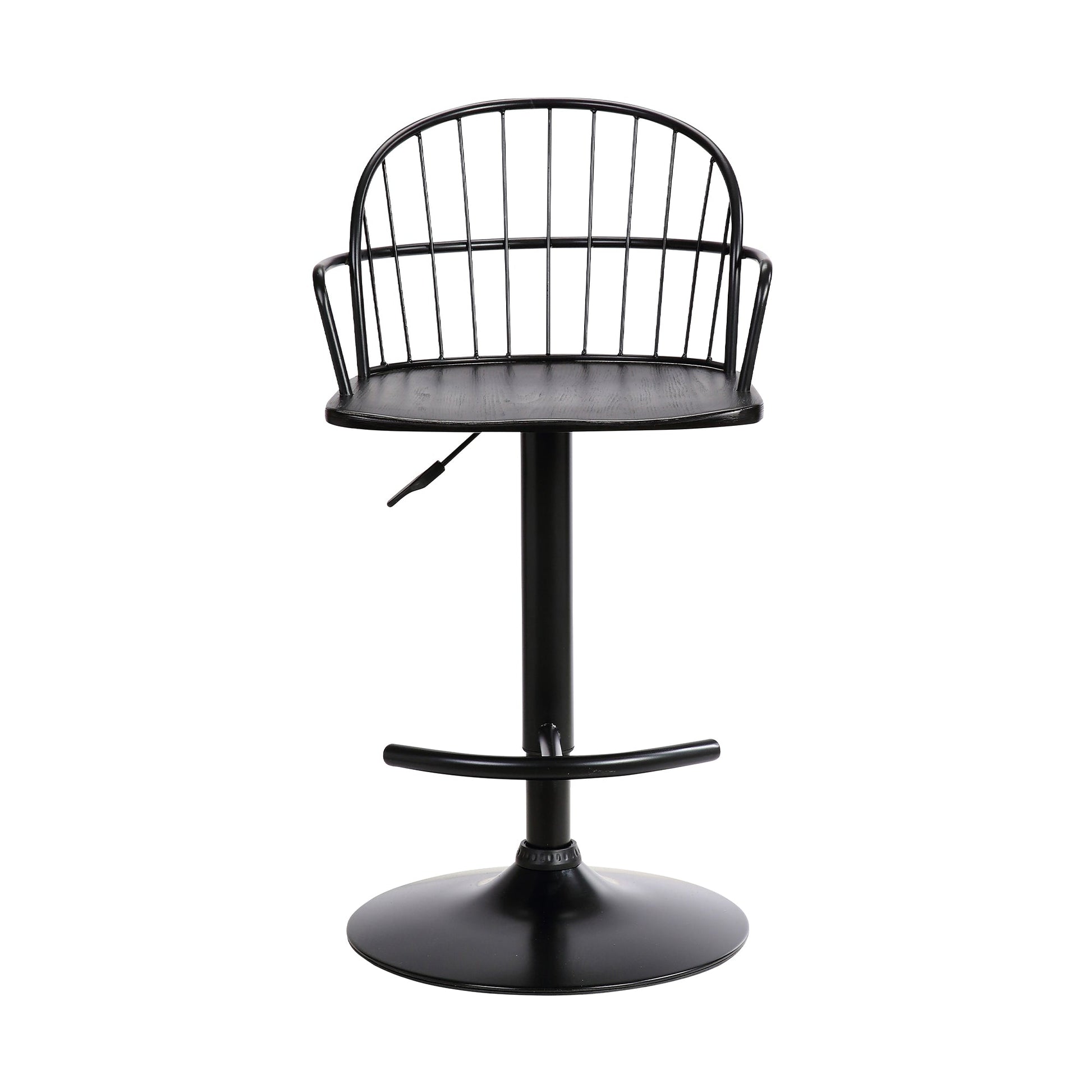 Edward Adjustable Wood and Metal Barstool in Black Powder Coated Finish