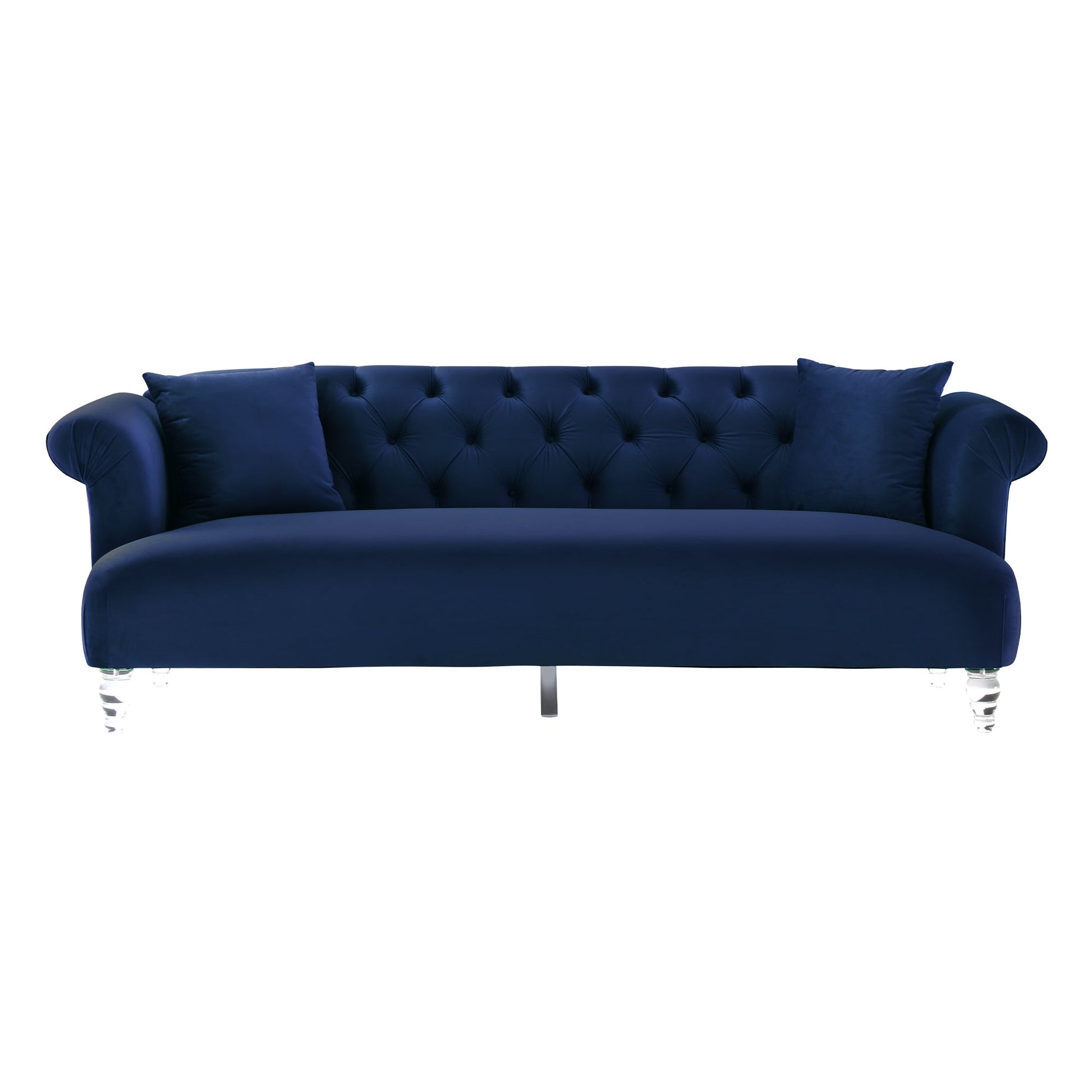 Elegance Contemporary Sofa in Blue Velvet with Acrylic Legs